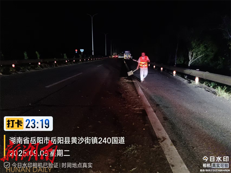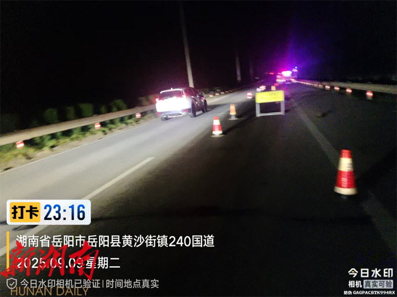 湖南日报·新湖南客户端9月11日讯(通讯员 周琪滨 方香) “G240线K1589+100处路面有大面积油污,长度约200米,车辆通行时明显打滑,存在极大安全隐患!”9月9日22时05分,岳阳县公路建设和养护中心鹿角中心站的养护人员在开展夜间常规巡查时,发现这一险情后,第一时间将情况上报。