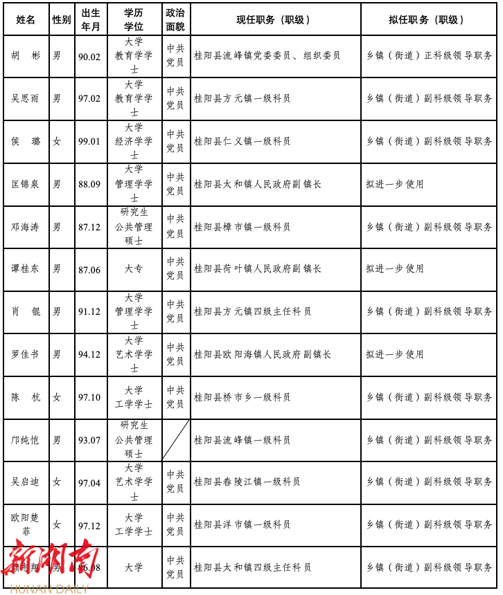 为了加强对干部选拔任用工作的监督,提高识别和任用干部的准确程度,现对县委常委会会议研究决定的下列25名拟任职(提名)人选进行任前公示: