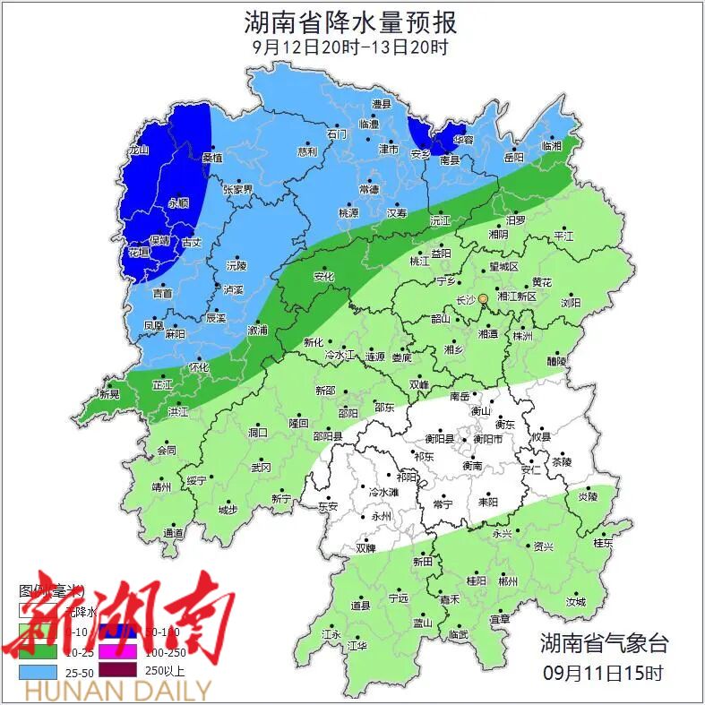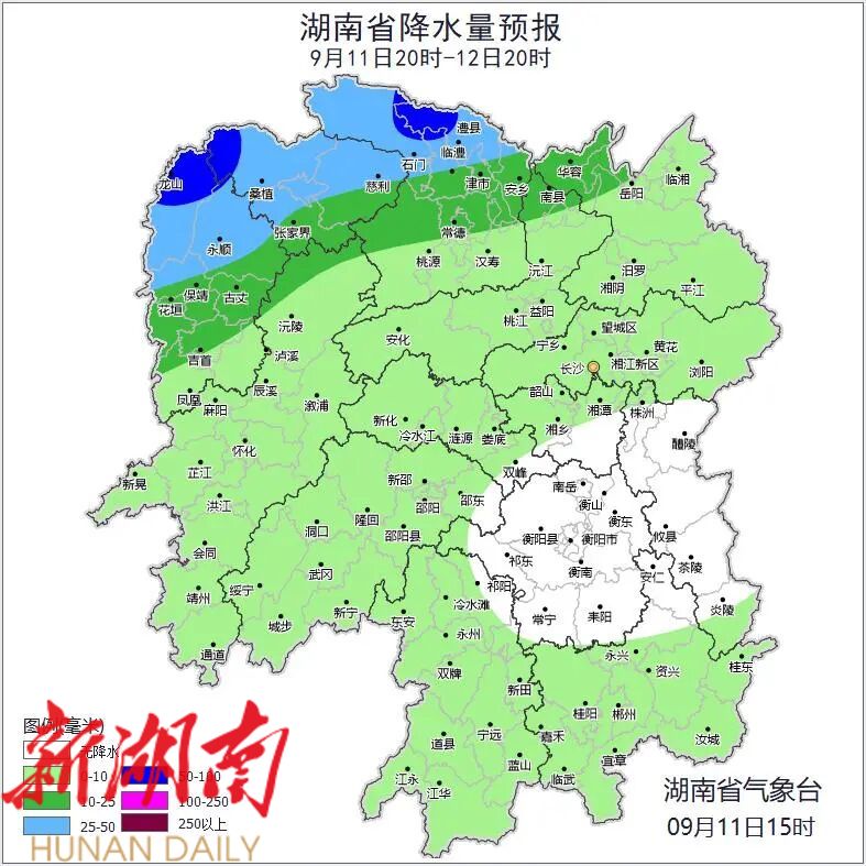 今天晚上至明天白天 ,湘北阴天有中到大雨,其中湘西州北部、张家界西部、 常德北部局地有暴雨,其他地区多云,大部分有阵雨或雷阵雨;湘北南风转北风2~3级,其他地区南风2~3级,雷雨时局地阵风7级;最高气温湘南33~37℃,其他地区28~32℃,最低气温22~26℃。