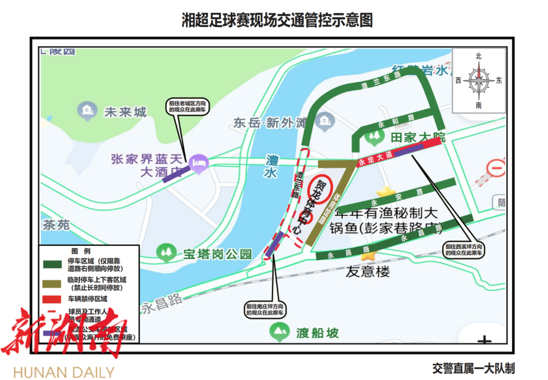 为保障2025年湘超联赛在张家界贺龙体育馆安全圆满举行,确保周边道路交通安全,根据《中华人民共和国道路交通安全法》有关规定,经研究,决定对贺龙体育馆部分道路进行全封闭交通管制,现将交通管制事项通告如下: 一、管制时间: