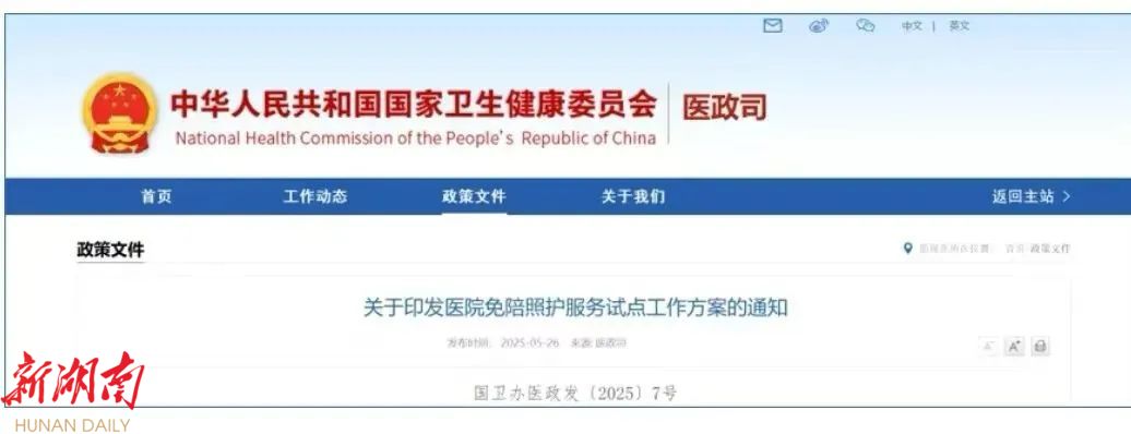 汉寿融媒9月12日讯(通讯员:吴 璇)为贯彻落实党中央、国务院决策部署,国家卫生健康委、国家中医药局、国家疾控局联合印发了《医院免陪照护服务试点工作方案》,旨在进一步改善患者就医体验,增强人民群众获得感。