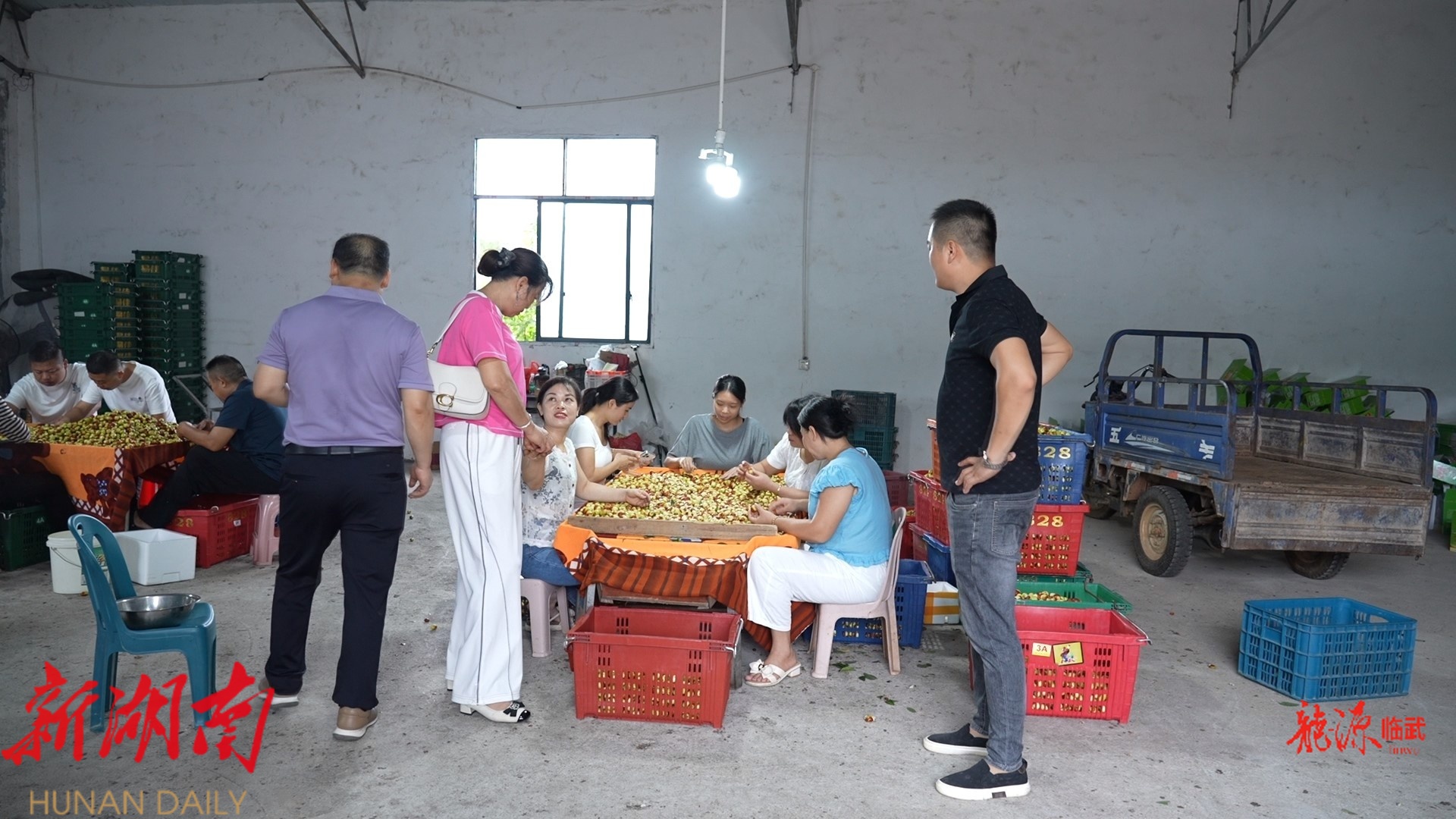 在临武县昌达脆枣种养专业合作社的仓库里,农户们正忙着分拣、打包刚刚采收的鲜枣。一旁,水果批发商将一筐筐精选的脆枣过秤装车。