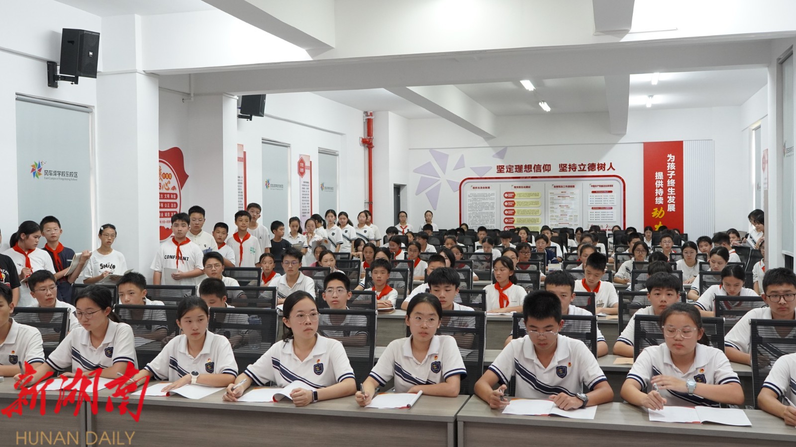 雨湖融媒9月12日讯 (通讯员 谢雨彤)9月12日,在湖南省湘潭市雨湖区教育系统共青团名师工作室的指导下,风车坪学校东校区成功举行第二期团校启动仪式。本次团校培训旨在深入贯彻落实共青团改革相关要求,进一步加强学校共青团员和入团积极分子的思想政治教育工作,不断提升学员的政治认同感、荣誉感与责任感,引导广大青年坚定理想信念、把准成长方向,努力成长为担当民族复兴大任的时代新人。