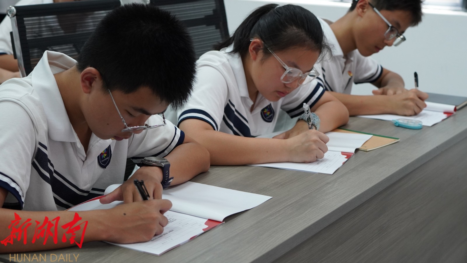 学生认真写笔记。