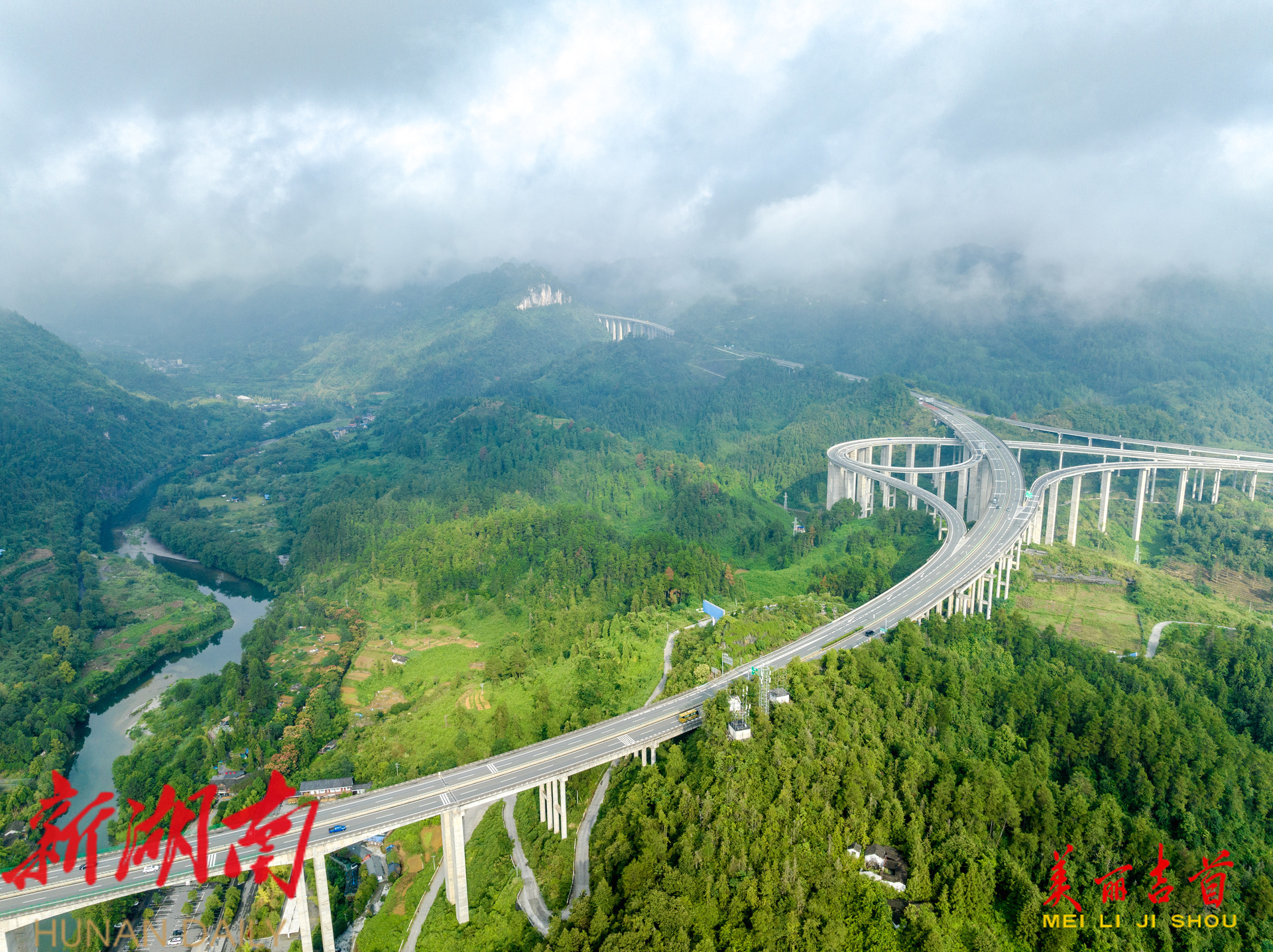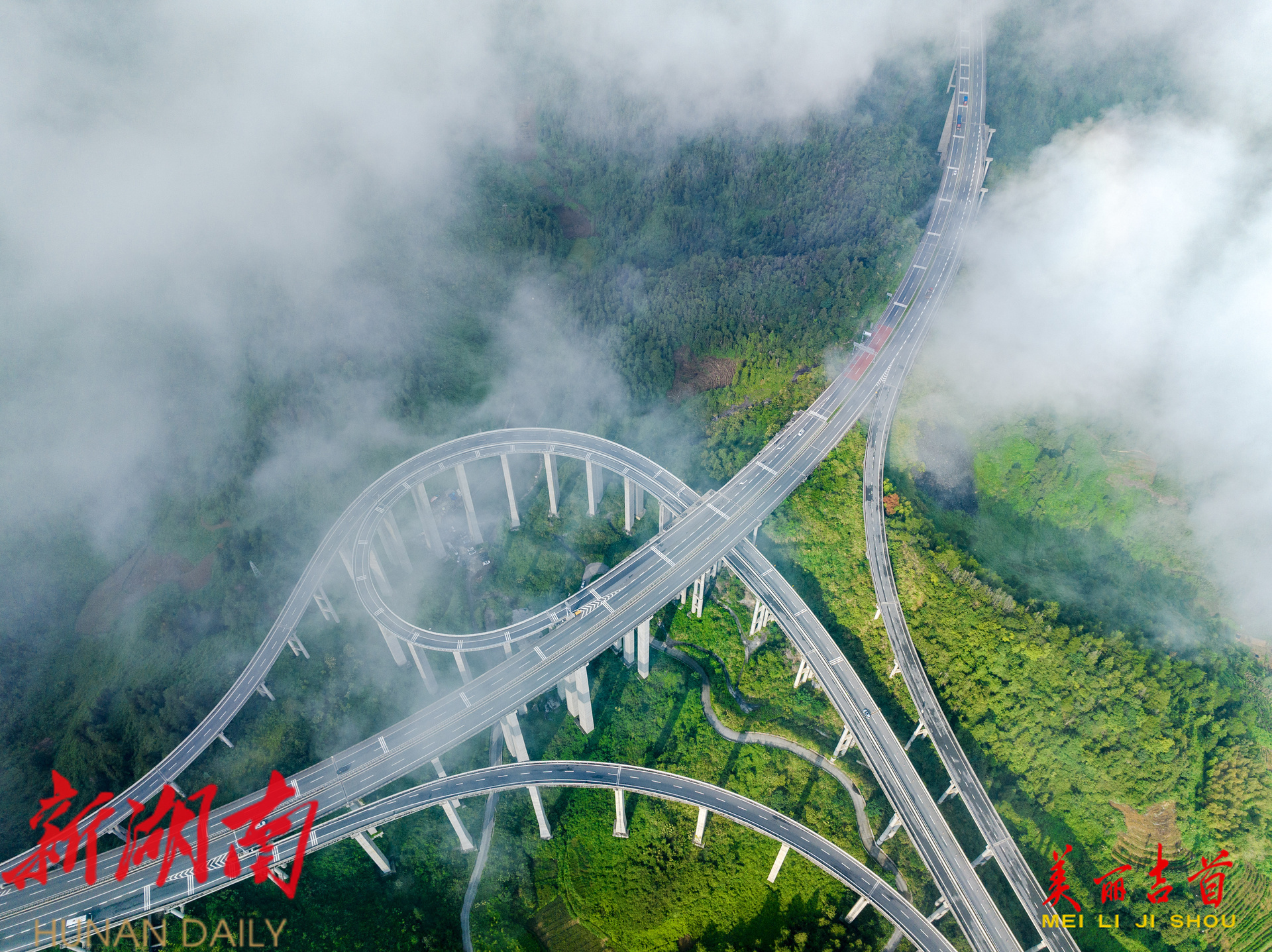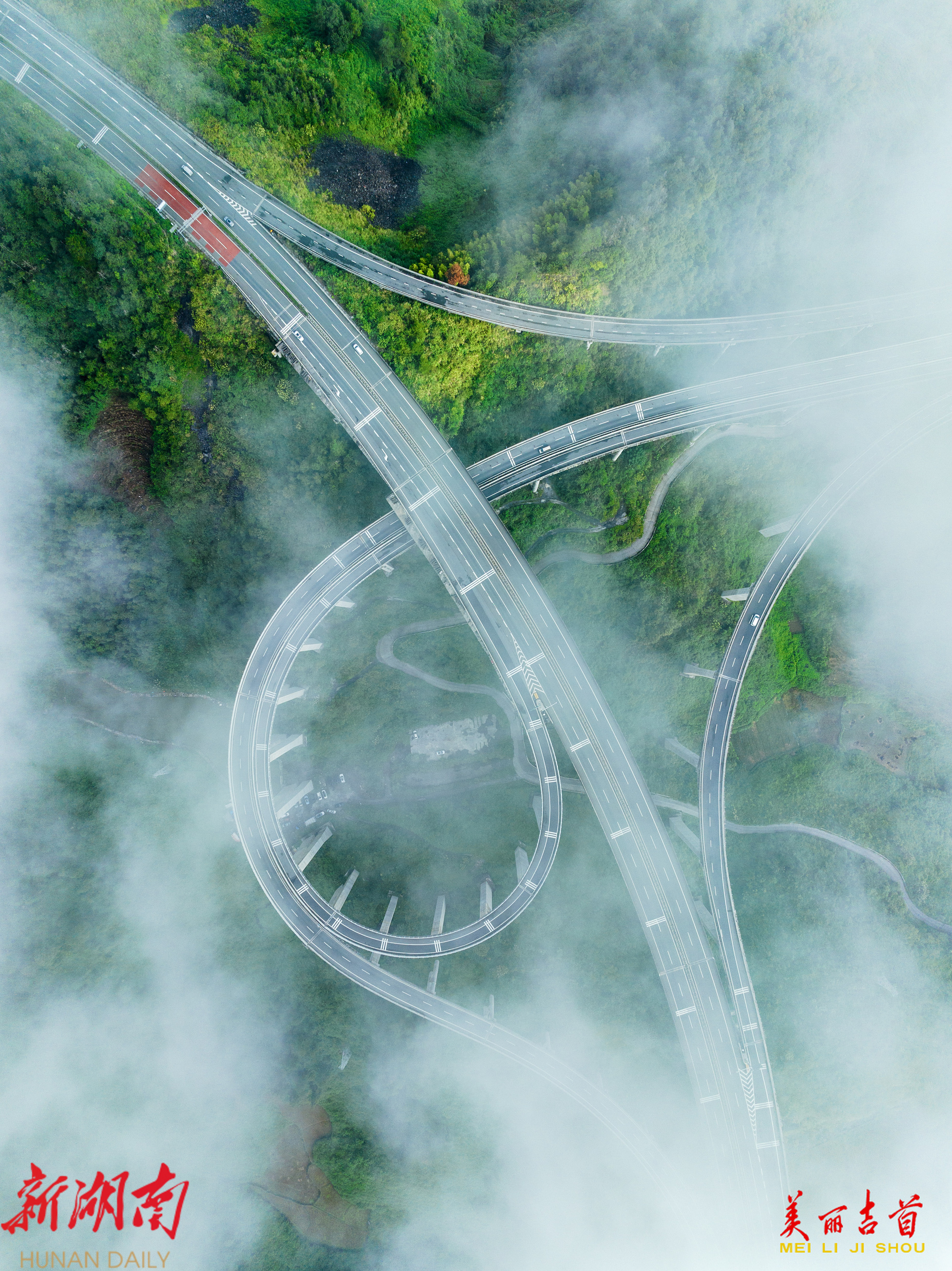 吉首市融媒体中心9月12日讯(全媒体记者 彭璟 ) 2025年9月12日,吉首市石家寨高速公路互通立交桥上空云雾缥缈,山峦、路桥与云雾相互交融,在晨光映照下,构成了一幅灵动而壮美的秋日画卷。