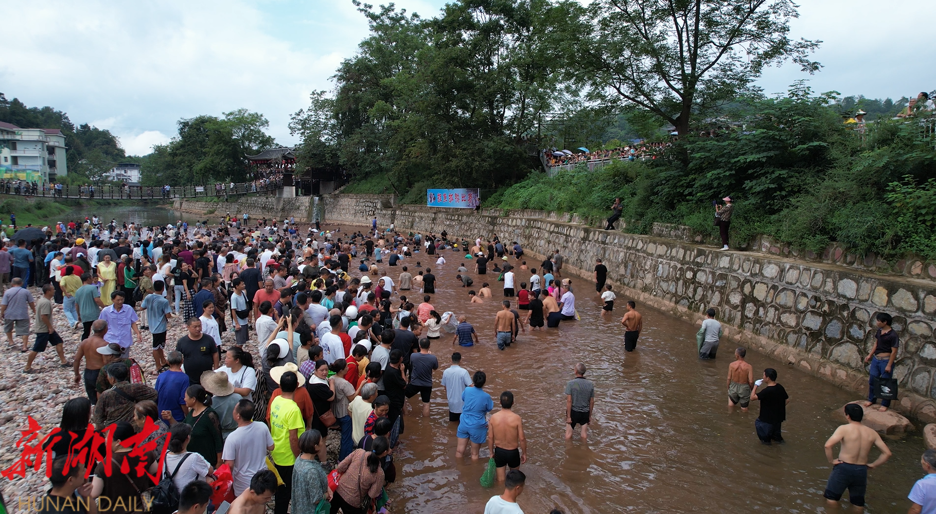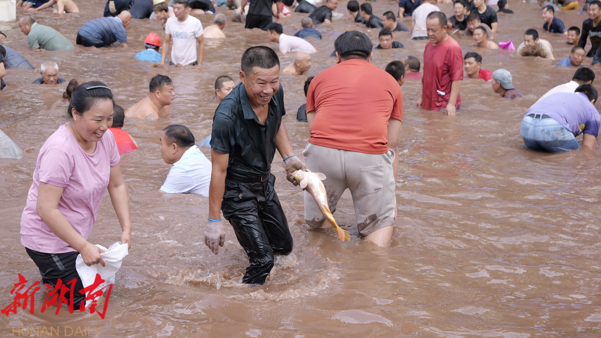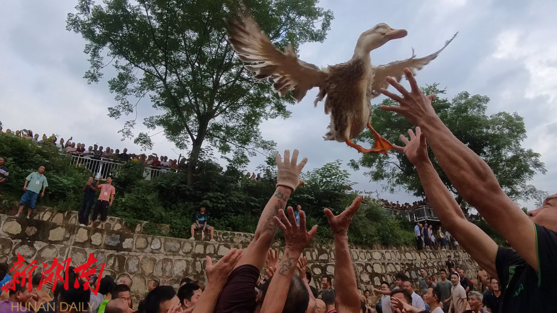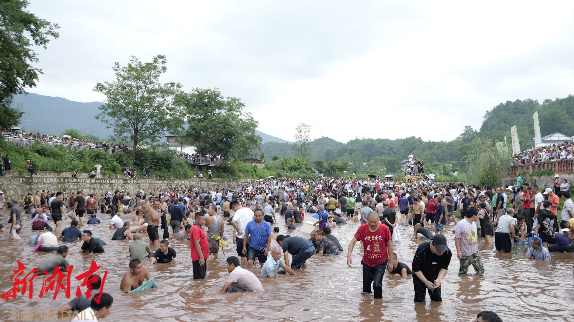湖南日报·新湖南客户端9月12日讯(通讯员 肖君 郭军)9月12日,桑植县民歌寨村歌赛暨陈家坪“七月二十一”赶会火热进行中!河道中,两千斤鲜鱼与八十只鸭子“疯狂输出”,村民和游客秒变“捕鱼达人”“抢鸭高手”,现场水花四溅、欢呼不断——这场面,够野!够欢乐!