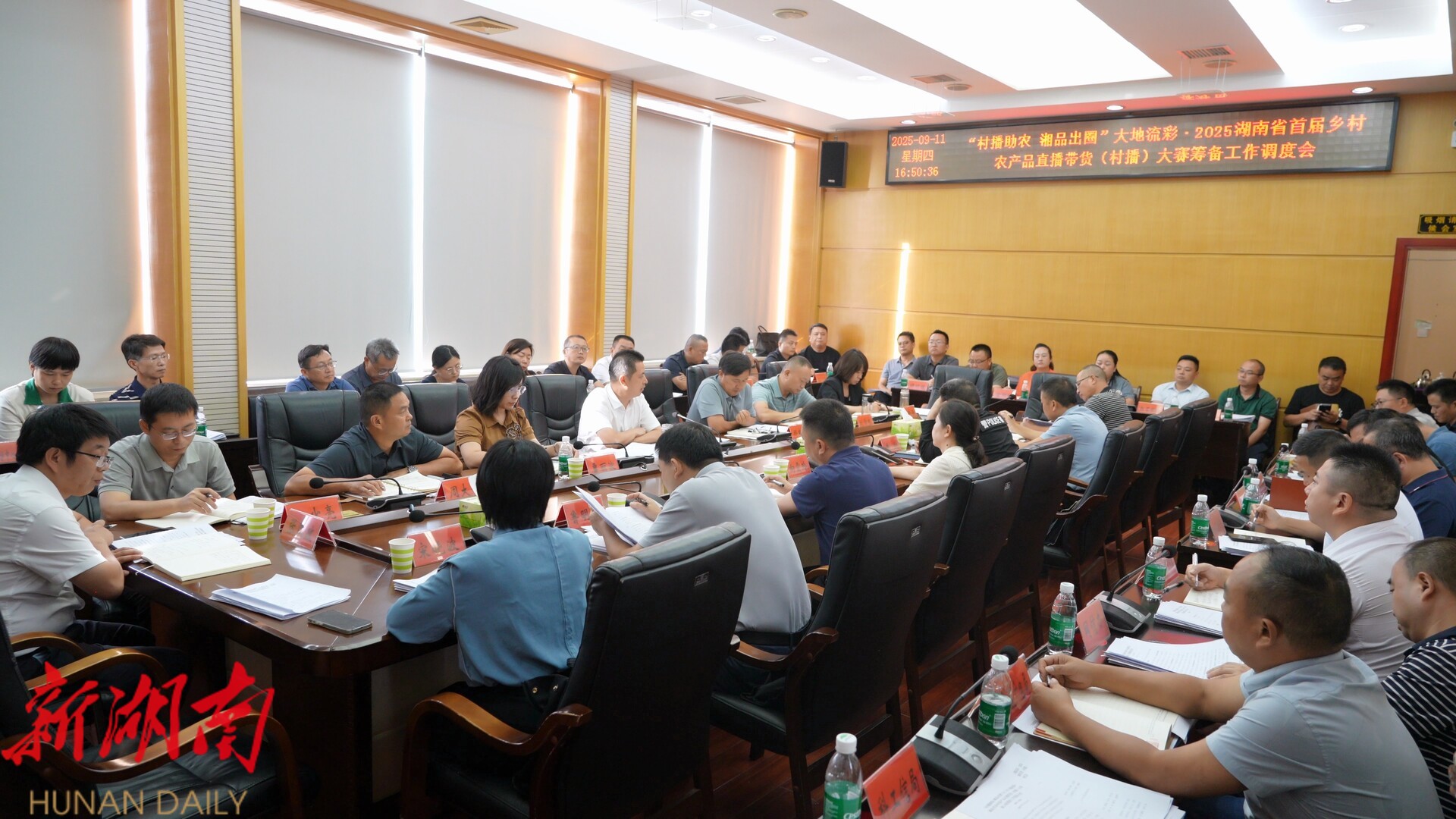 新湖南客户端9月13日讯(通讯员 郑湘)9月11日,湘西土家族苗族自治州古丈县委书记滕朝辉主持召开“村播助农 湘品出圈”大地流彩·2025湖南省首届乡村农产品直播带货(村播)大赛筹备工作调度会。他强调,要统一思想、明确任务、压实责任,高标准高质量推进筹备工作,努力将首届村播大赛办出特色、办出水平、办出实效,确保大赛安全有序、出彩出圈。