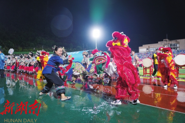 9月13日,凤凰县民族体育运动中心,湘西州队迎战益阳队,赛前的非遗表演精彩纷呈。