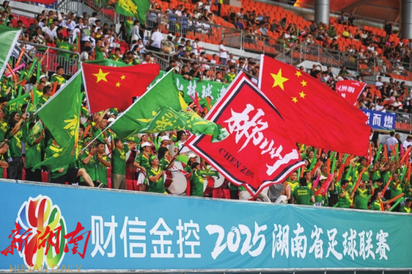 9月13日,郴州市体育中心,球迷为主队加油助威。