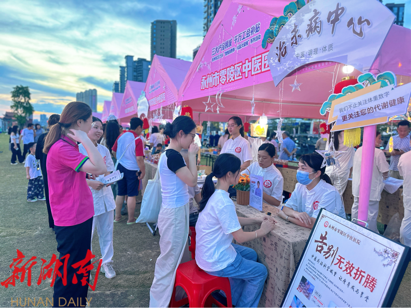 湖南日报·新湖南客户端9月14日讯(通讯员 唐柳)9月13日,零陵区中医医院将“摊位”设到湘江西路,开展中医药文化惠民集市活动,以免费脉诊、推拿理疗、中医养生咨询、药食同源健康月饼品鉴等互动体验为载体,将中医药智慧与“三减三健”健康理念融入市民日常生活。