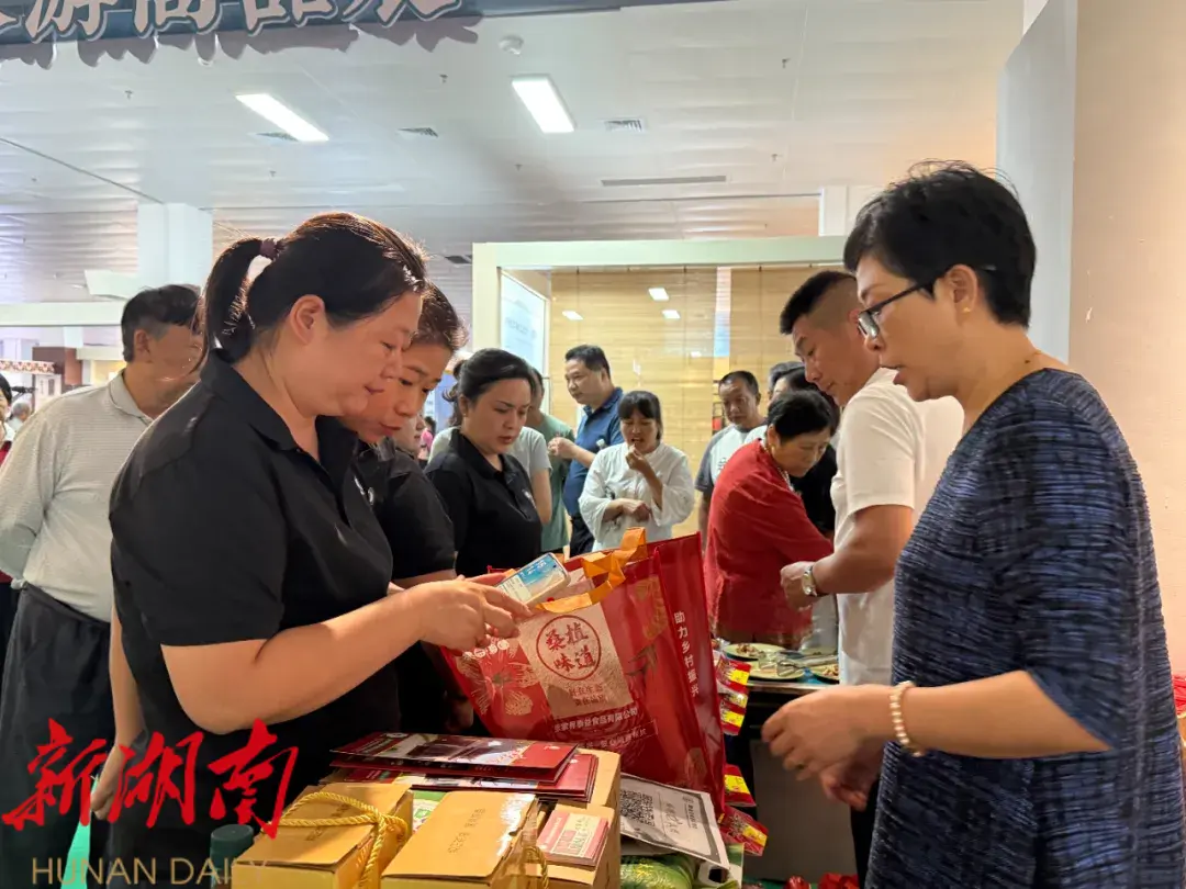 湖南日报·新湖南客户端9月14日讯 近日,张家界旅游商品展销会在慈利县慈姑文体中心举行,桑植丰富多样的农特产品吸引了广大市民和游客的关注,深受大家青睐。
