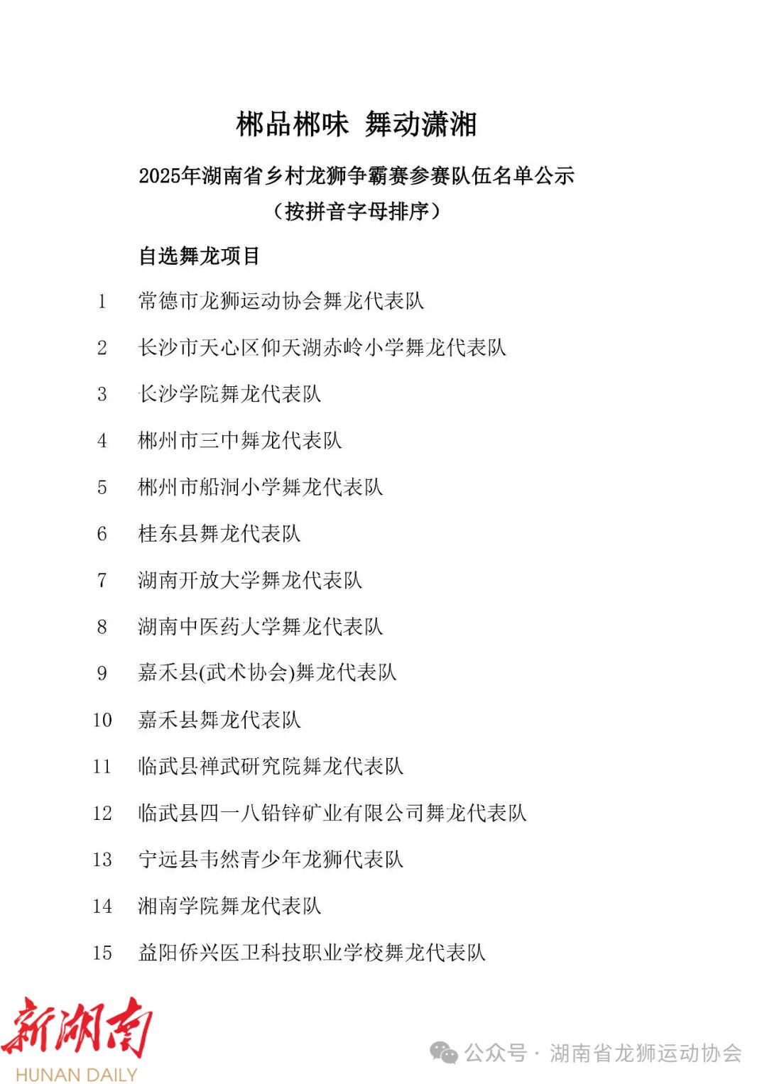 2025湖南乡村龙狮争霸赛名单揭晓,看看有你家乡队吗?