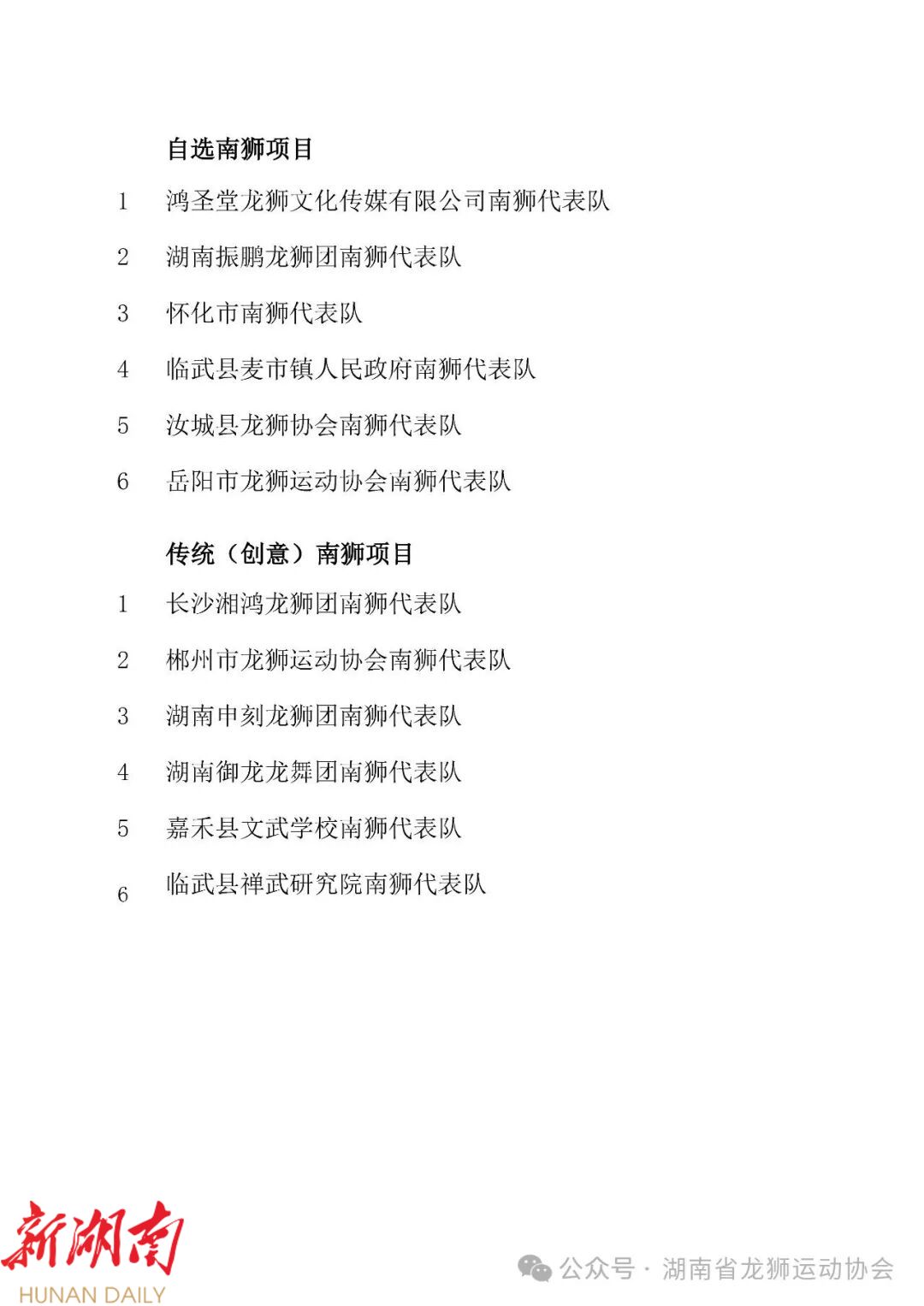 经赛事组委会研究决定,自选南狮项目和传统南狮项目各新增1名“三等奖”。