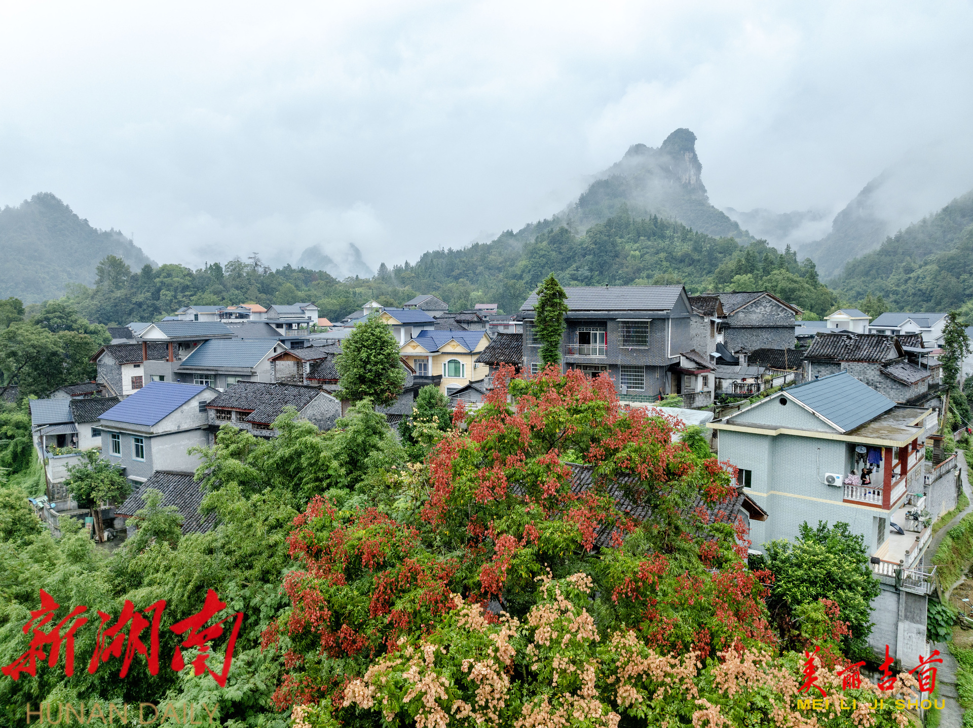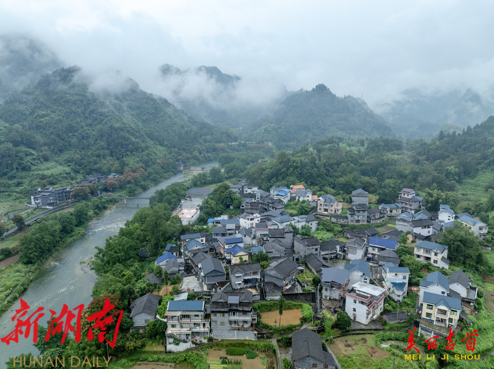 吉首市融媒体中心9月15日讯(全媒体记者 彭璟)2025年9月14日,吉首市石家冲街道寨阳村秋雨朦胧,青山云雾缭绕,河水蜿蜒流淌,村庄静卧其间,自然与人文和谐相融,呈现出一幅美丽的山水画卷。