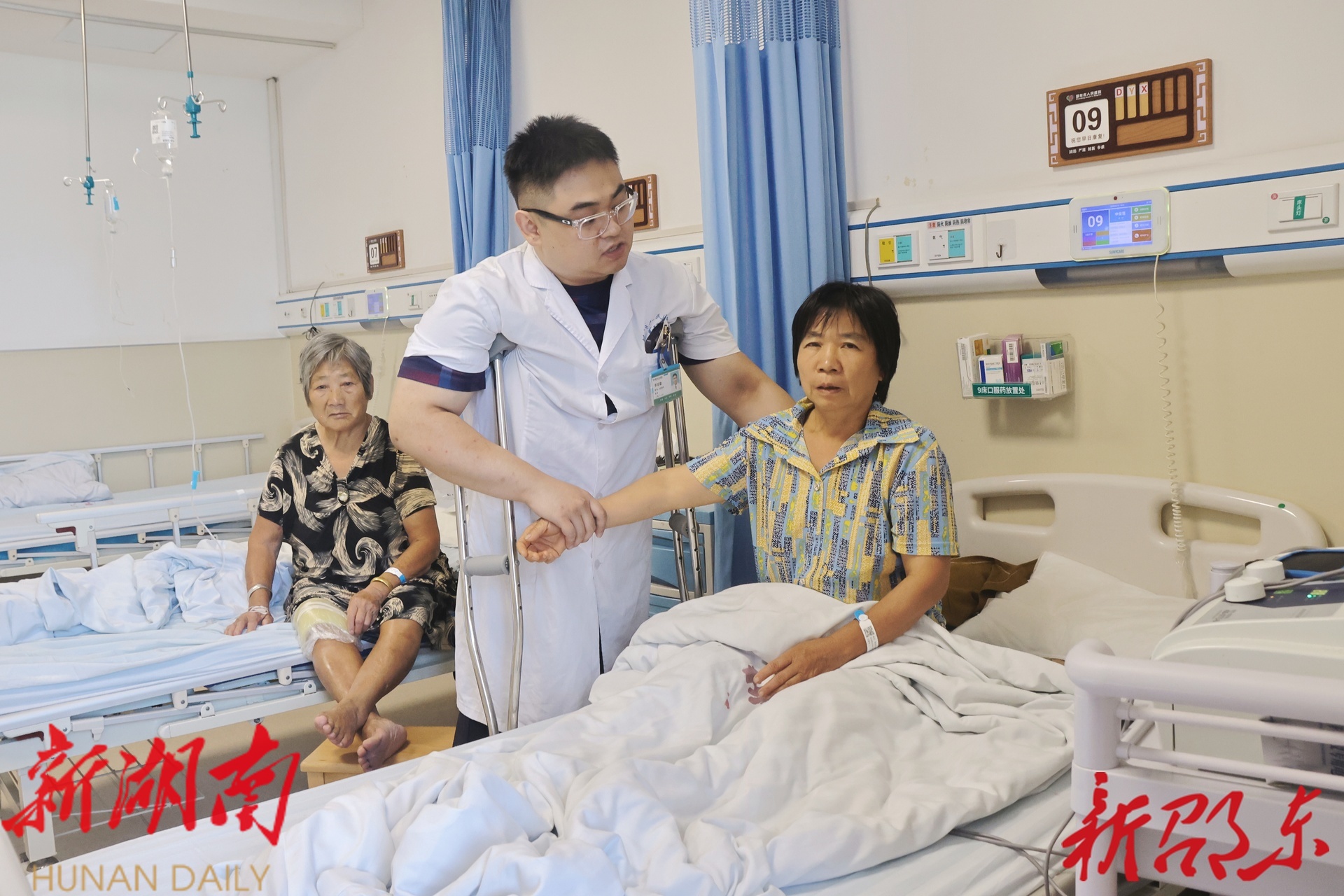 新邵东客户端9月15日讯(记者 邓远) 9月14日,在邵东市人民医院中医科的病房里,中医内科学博士李旭敏正在为一位重度骨质疏松患者检查恢复情况。