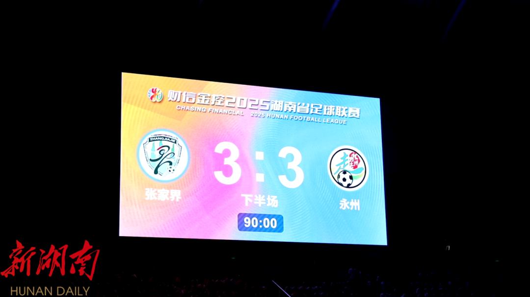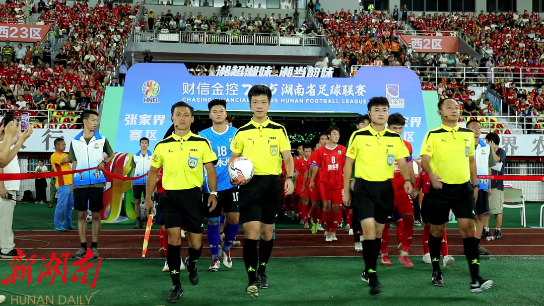 湖南日报·新湖南客户端9月15日讯(通讯员 谢丽琼 全校莹 )9月14日晚,张家界贺龙体育中心被点亮,两万球迷涌入,共同见证2025湘超联赛张家界队主场迎战永州队的首场巅峰对决。