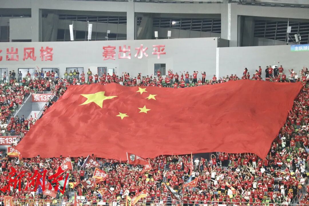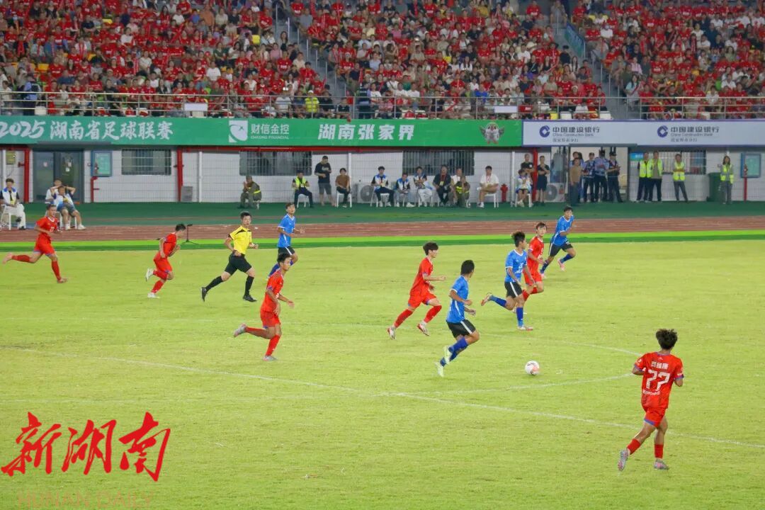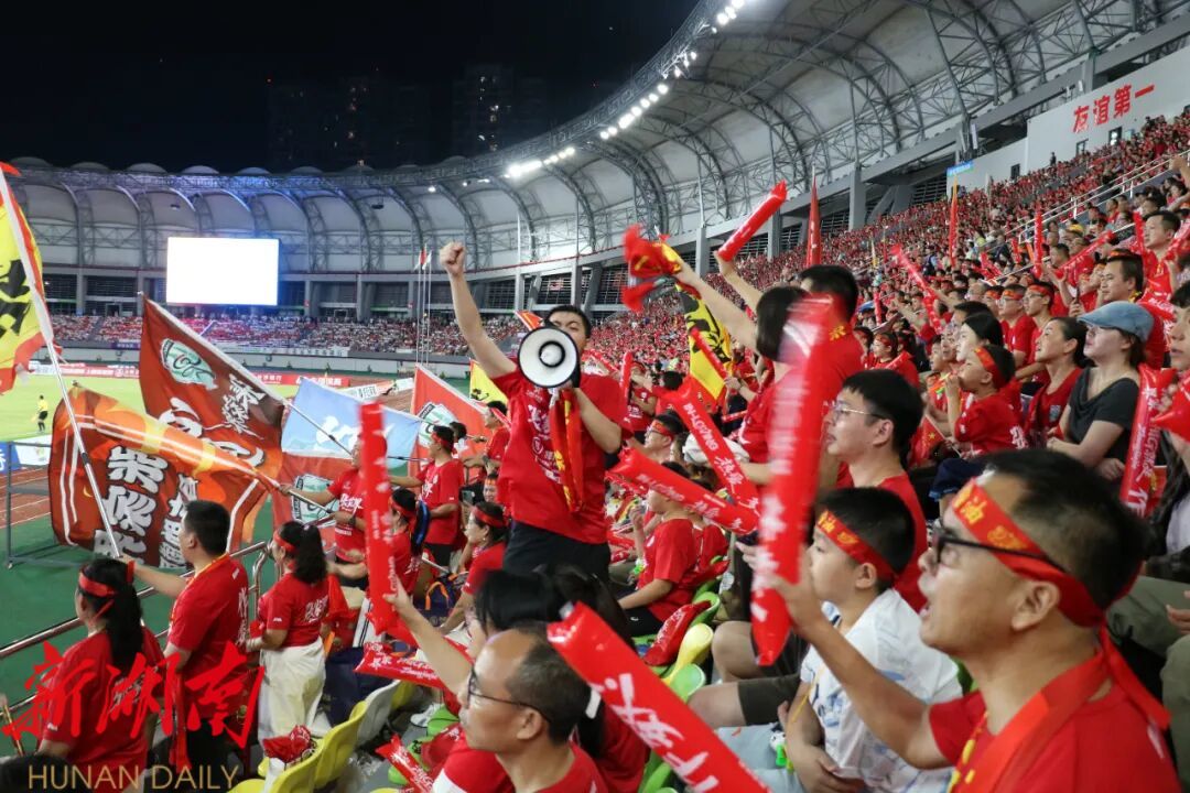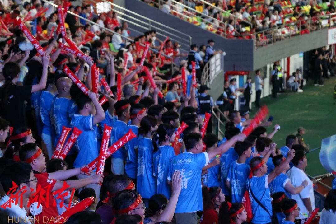 “张家界加油”的旗帜在看台间挥舞如浪