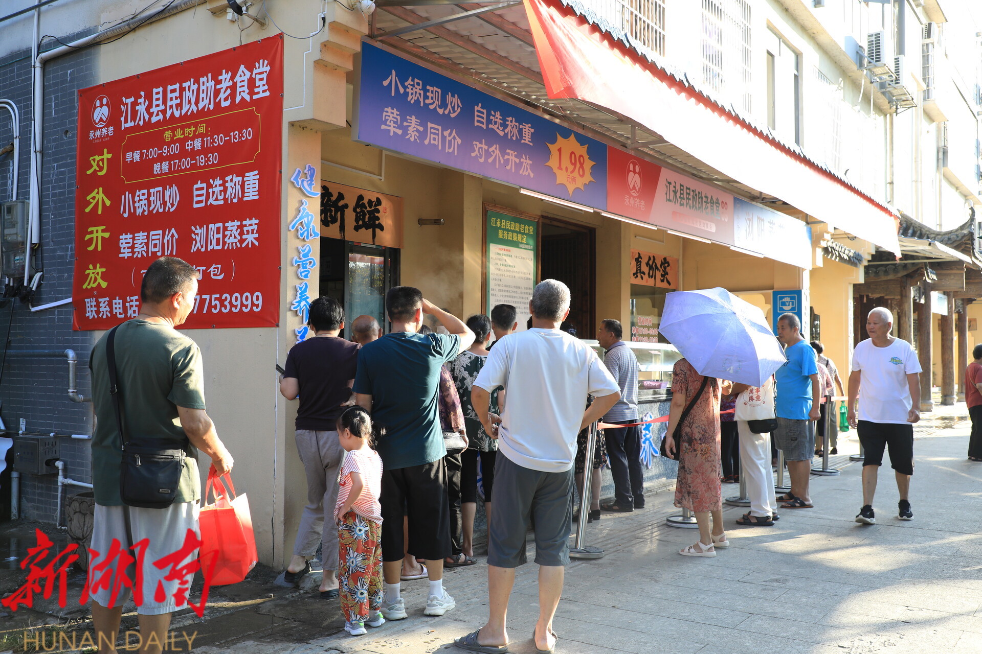 江永县潇浦镇永华国际小区居民王月娥说:“我早中晚基本都在这儿吃,荤素搭配合口味,年纪大了懒得做饭,直接来食堂省心又舒心。”