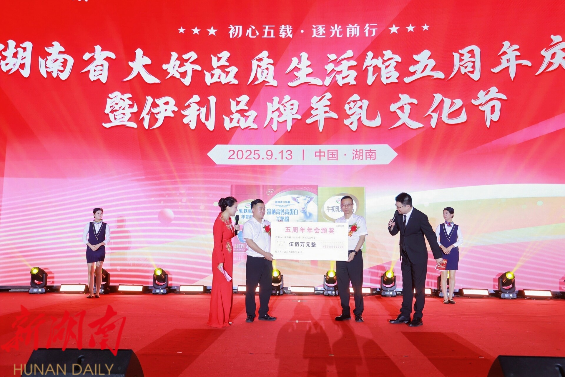 湖南日报·新湖南客户端9月14日讯(通讯员 万蓉)9月13日,以“初心五载·逐光前行”为主题的湖南大好品质生活馆五周年庆典暨羊乳品牌文化节启幕。湖南省营养品保健食品协会、武汉大学全球健康中心等权威机构代表,奥运冠军团队、明星嘉宾及3000多名湖南大好品质生活馆的会员顾客代表出席。