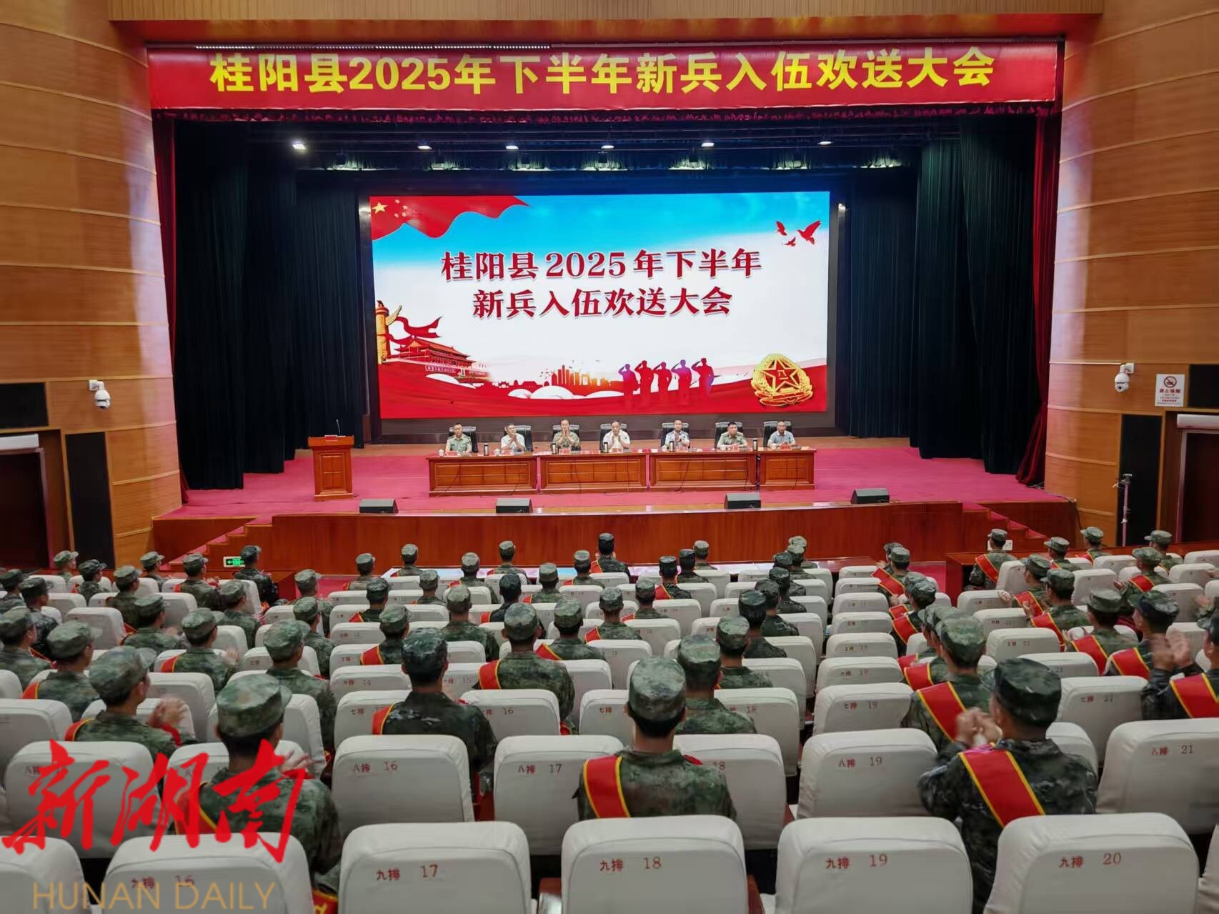 新桂阳9月15日讯(记者 邓超玮 周立志)今天下午,我县召开2025年下半年新兵入伍欢送大会。县委副书记、县长李志强参加并致辞,县委常委、县人武部部长谭高宇主持会议。
