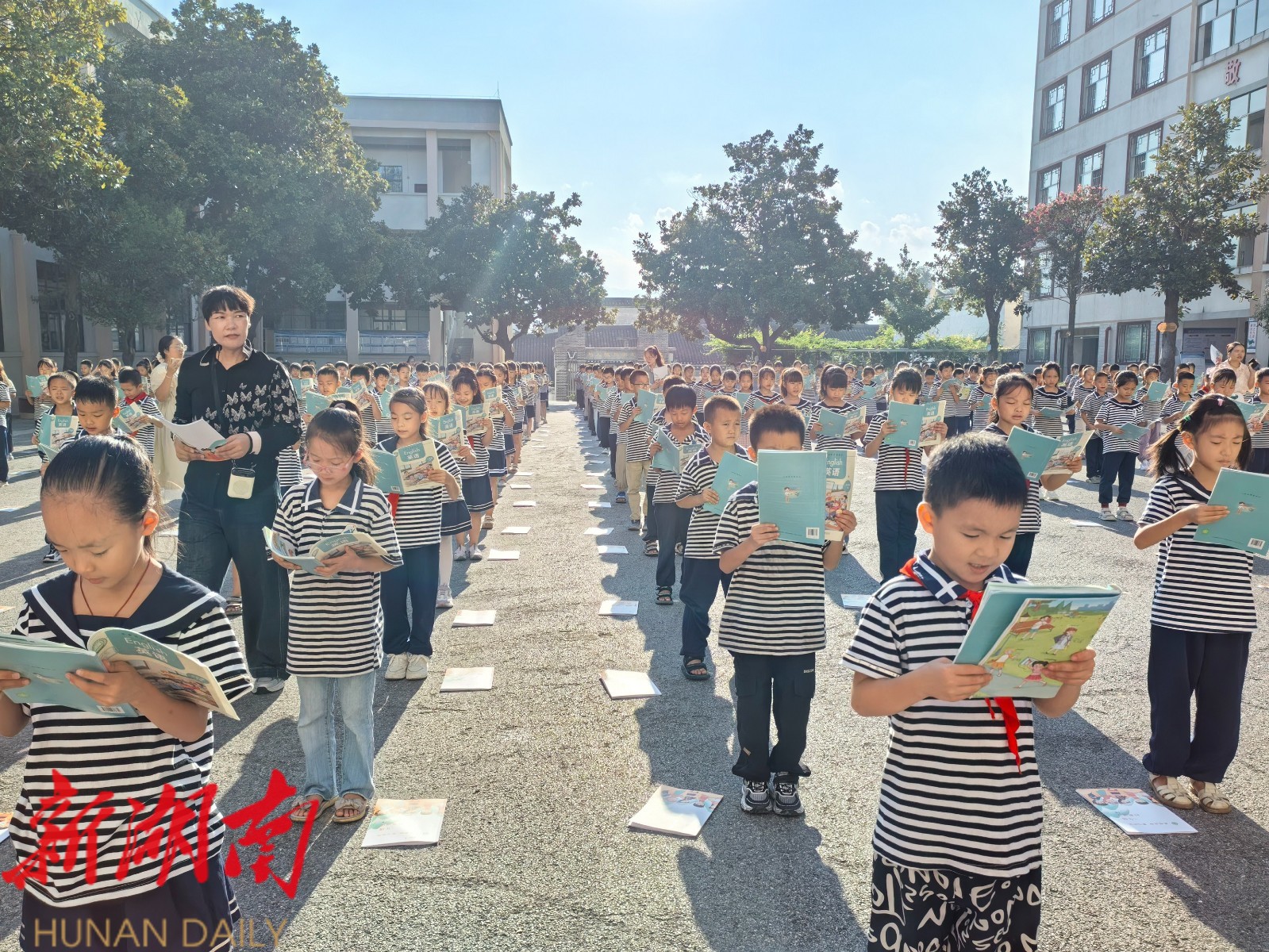 伴随着清脆的铃声,英语晨读活动正式拉开帷幕。大操场上,同学们手捧英语课本,齐声朗读课文,发音标准、节奏整齐,最后,在边拍手边唱英文儿歌中结束,让晨读变得生动有趣。