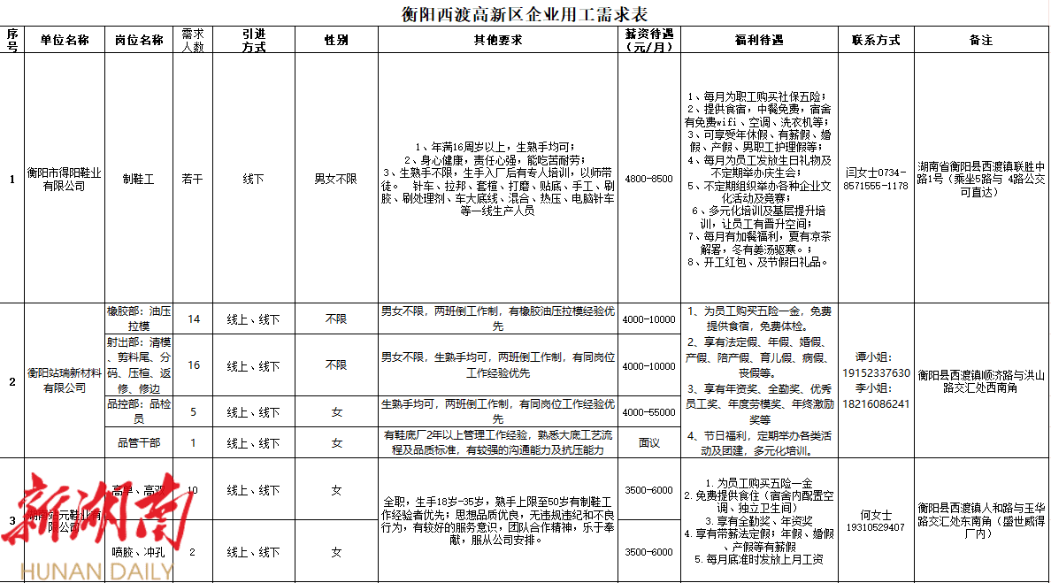 2025年衡阳西渡高新区企业用工需求统计汇总表(9.16更新).xls..xlsx