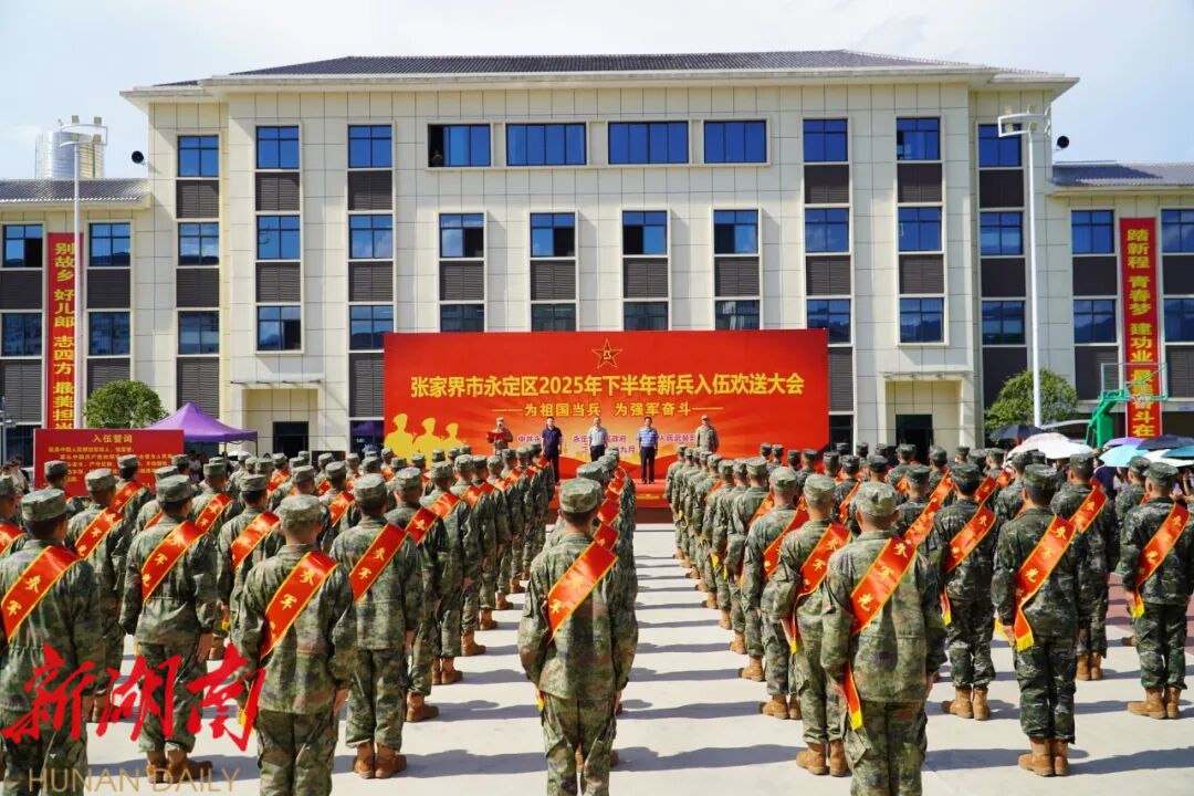 金秋送爽,欢送新兵。9月15日,永定区2025年下半年新兵入伍欢送大会举行,96名新兵肩负着家乡人民的殷切期望和保家卫国的神圣使命,即将踏上从军报国新征程。 大会在雄壮激昂的国歌声中正式拉开帷幕。身着戎装、肩披绶带、胸戴红花的新兵们整齐列队、精神抖擞,在宣读了2025年下半年新兵入伍批准命令后,全体新兵进行了庄严的入伍宣誓,铮铮誓言响彻全场。随后,新兵代表进行了热情洋溢的发言,用铿锵有力的话语表达了投身军营、报效祖国的坚定决心。 在嘹亮的《中国人民解放军军歌》声中,新兵入伍欢送大会落下帷幕。 据了解,自2025年下半年征兵工作开始以来,永定区广大适龄青年积极响应号召,踊跃报名参军,经过严格挑选、层层把关,最终96名优秀适龄男青年被批准应征入伍。从9月16日开始,他们将分批奔赴军营,为国防和军队现代化建设贡献青春力量。