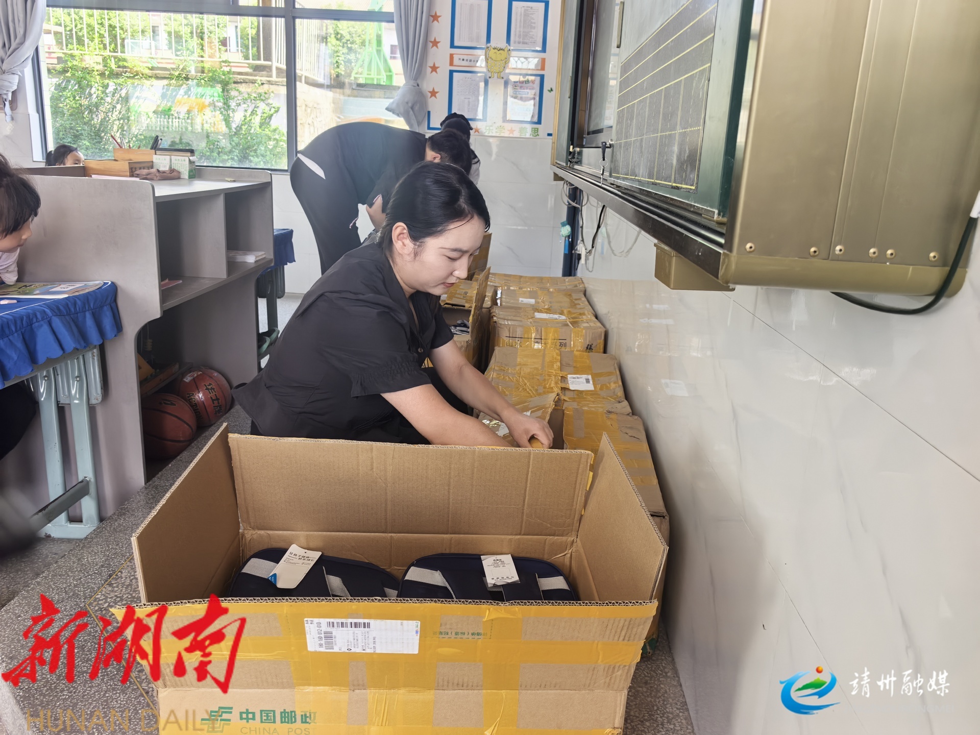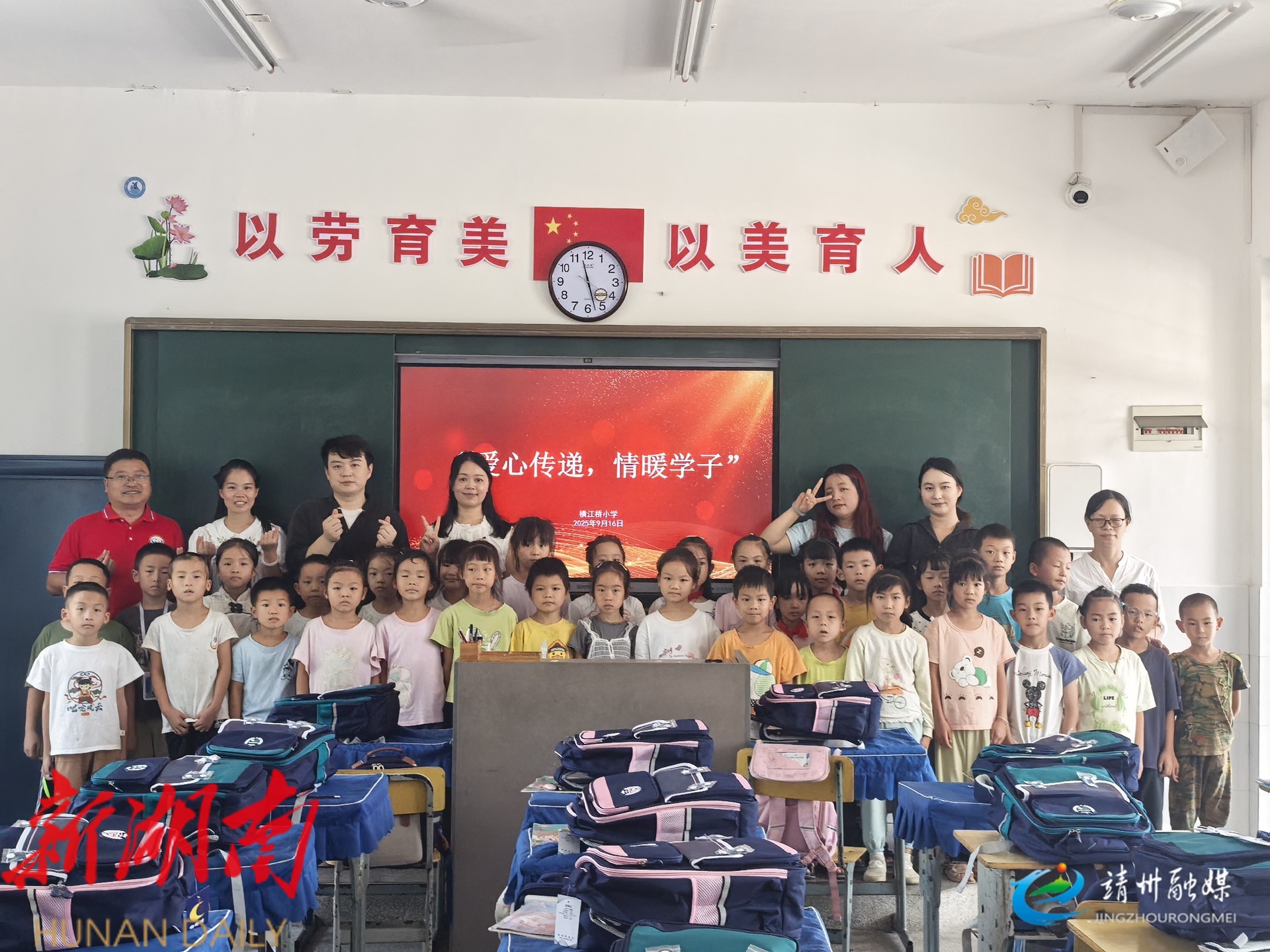 靖州融媒9月16日讯 (记者 钦苏芬 通讯员 秦明)9月16日,靖州苗族侗族自治县横江桥小学暖意涌动,浙江省宁波杭州湾爱心团体的3名代表远道而来,为该校34名学生送上爱心物资。