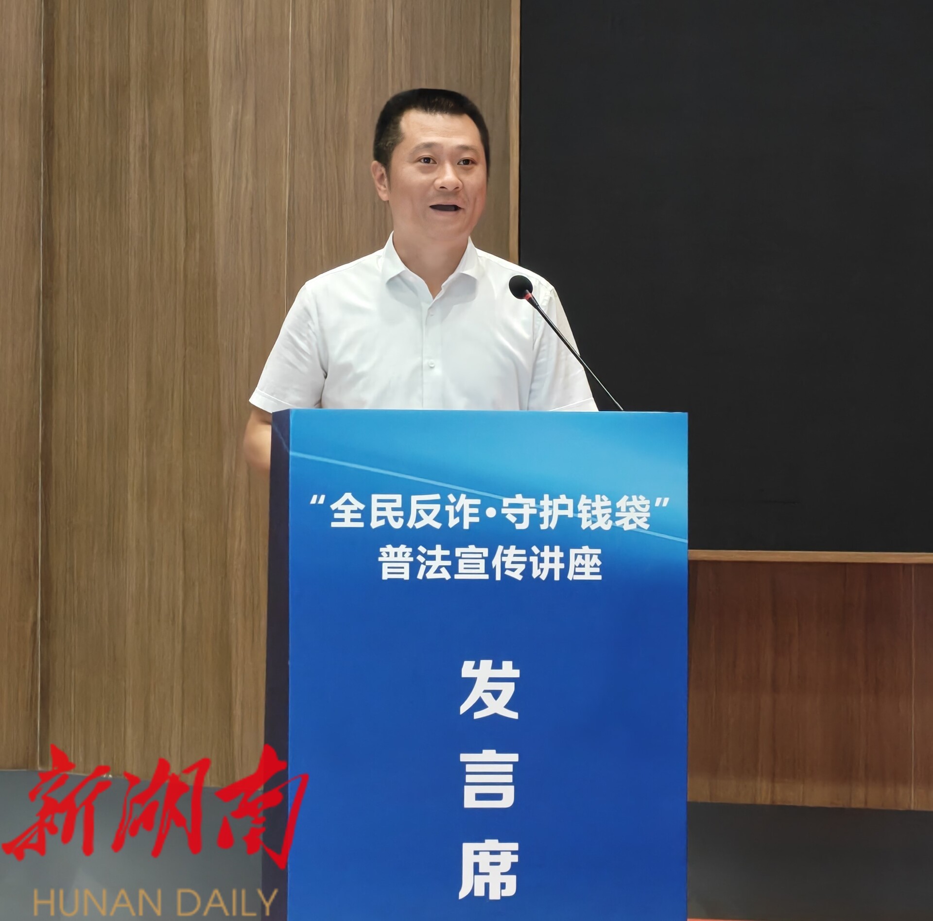 湖南日报·新湖南客户端9月16日讯(通讯员 林松)今天上午,开福区青竹湖街道办事处联合青竹湖派出所在辖区三能房屋有限公司举办“‘全民反诈·守护钱袋’青竹湖在行动”主题宣传活动。开福区公安分局副局长刘卫平、青竹湖街道办事处主任严禹等相关负责人参加,200余名居民参与互动学习。