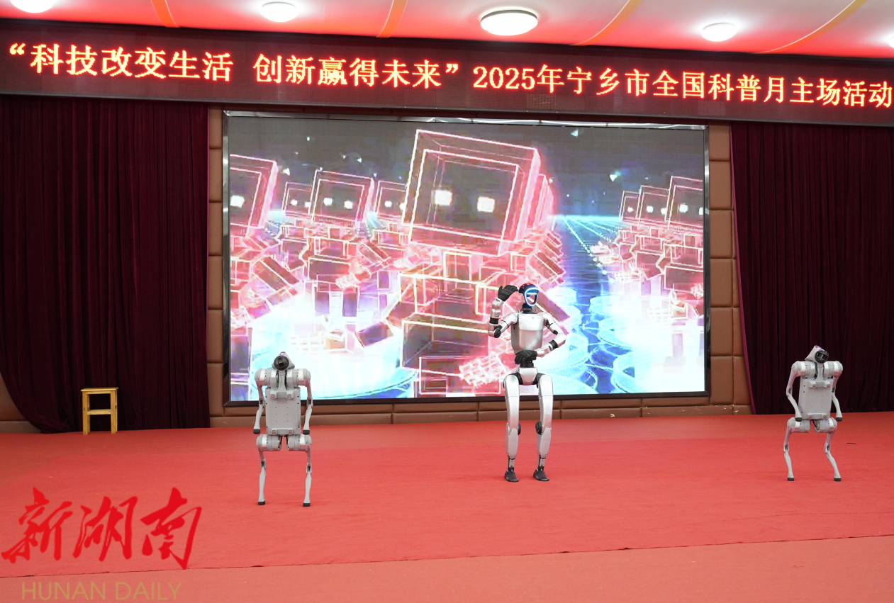 当天的主场活动科技味浓郁,精彩纷呈,机器人携机器狗进行酷炫的舞蹈表演,宁乡市中医医院职工表演《让我们遇见“椎”好的你》医学科普剧,“李白”机器人与一中学子激昂“斗诗”,中南大学教授、博士生导师徐海带来了“名侦探柯南与化学探秘”科普知识讲座。
