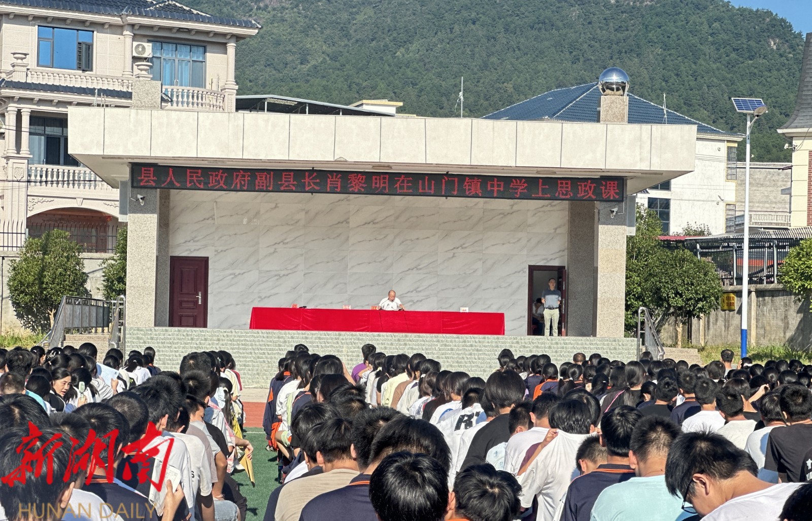 洞口融媒9月17日(通讯员:林原野 尹华彰 杨莉兰) 9月17日上午,副县长肖黎明走进山门镇中学,以“在时代坐标中找准青春航向,在强国征程中书写成长答卷”为主题,为全校师生讲授了一堂生动的思政课。