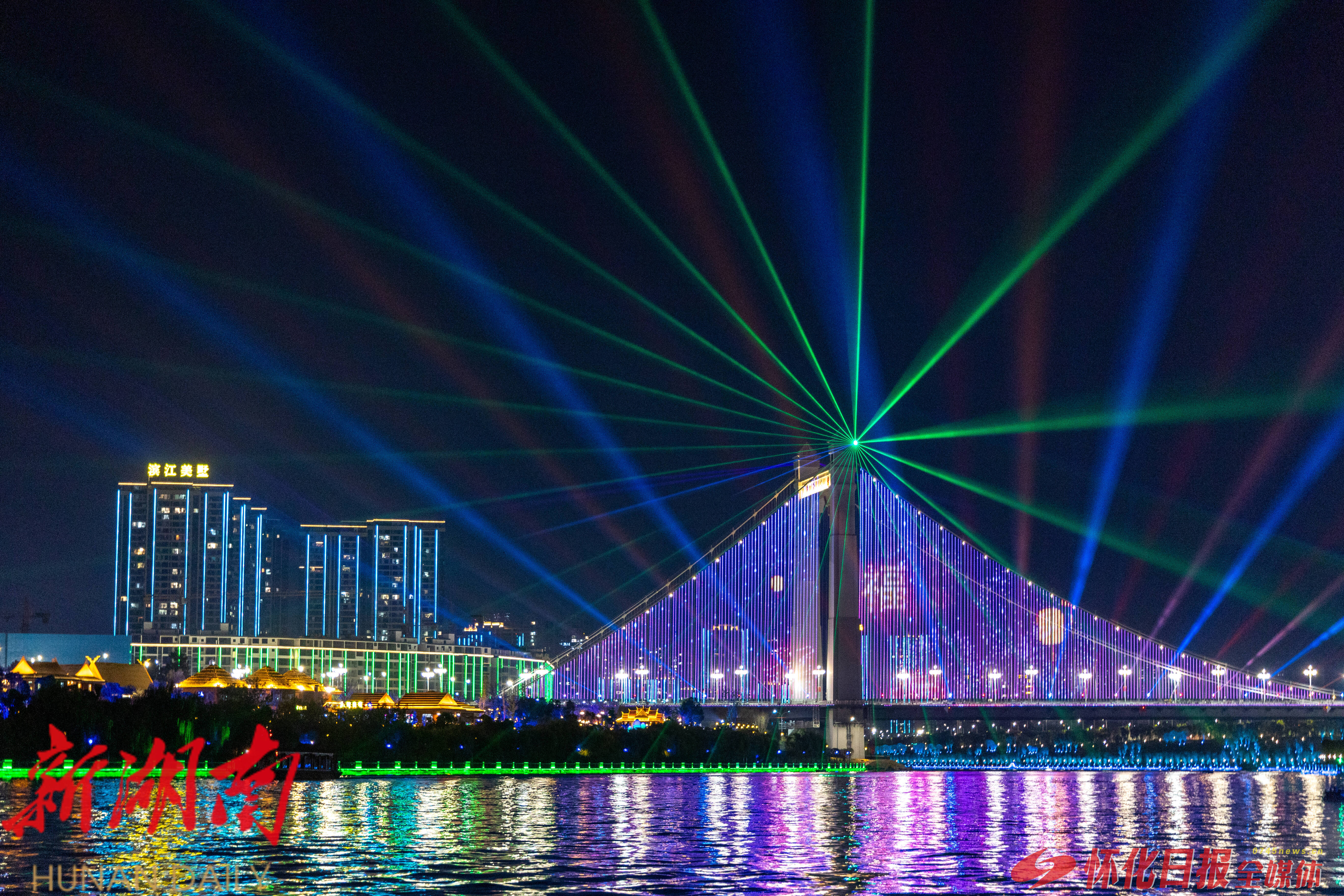 这场全长5.2公里的水上演出,串联榆树湾、天问岛、东盟集三大景区,以㵲水河为舞台,通过船载多媒体科技与两岸大型实景光影演艺,将怀化的历史文化、民族风情与现代科技融为一体,为游客带来沉浸式视听盛宴。