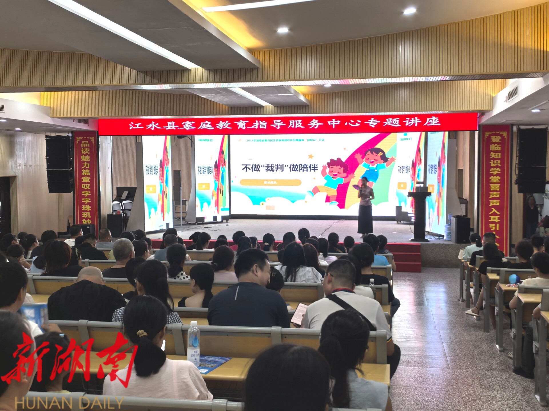 江永融媒9月17日讯(记者 周佳琳 通讯员 黄云香) 9月16日晚,江永县家庭教育指导服务中心走进江永一小,一场以“不做‘裁判’做陪伴”为主题的家庭教育讲座热闹开讲,手把手教家长用有效陪伴,帮孩子适应小学生活。