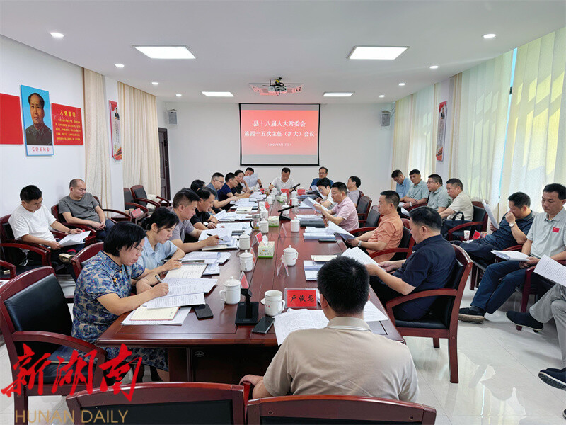湖南日报·新湖南客户端9月17日讯(通讯员 周昱君) 9月17日,县人大常委会党组书记、主任周峰主持召开县十八届人大常委会第45次主任(扩大)会议,党组副书记、副主任王卫兵,副主任彭碧芳、胡秉阳、吴承棉出席。