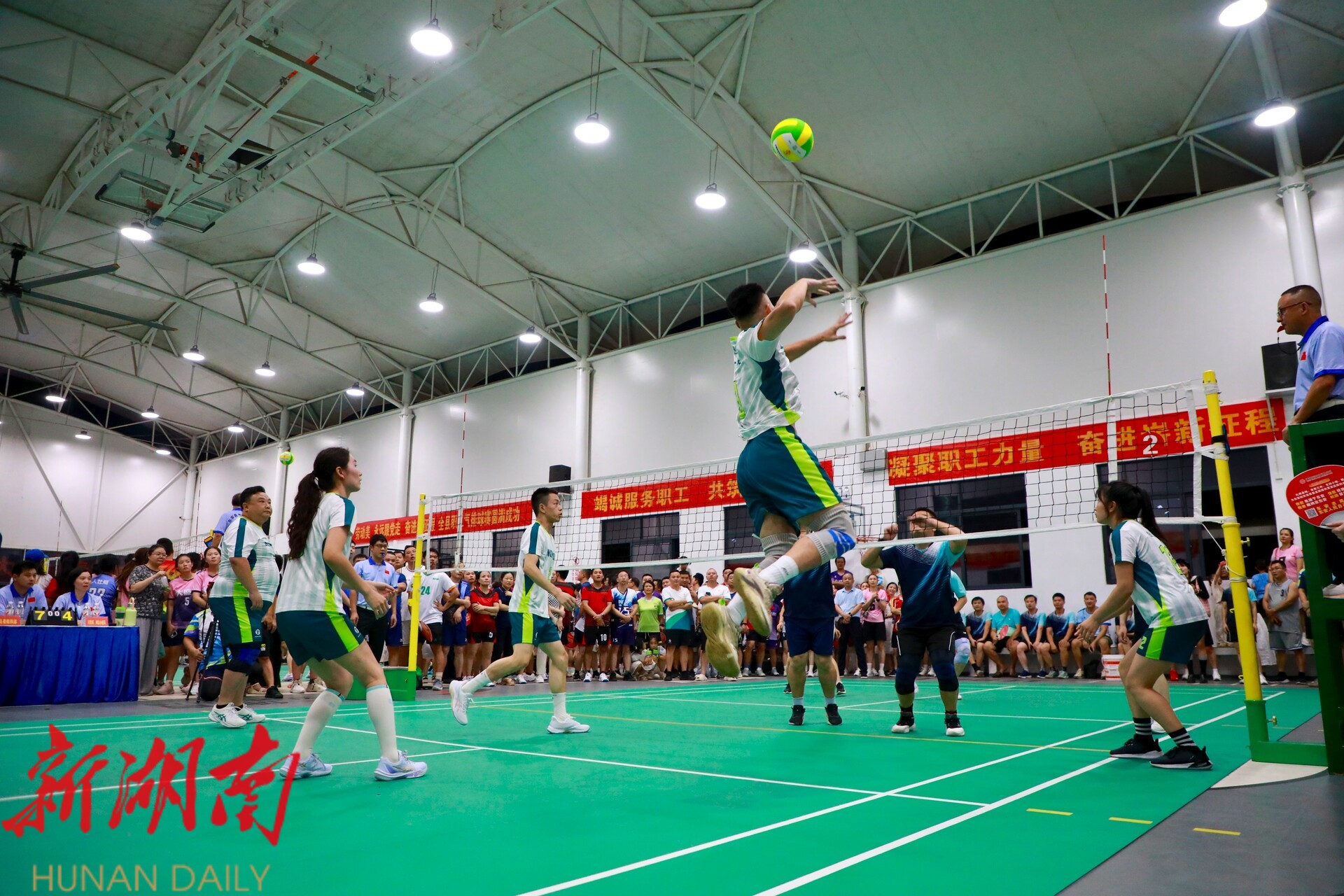 开幕式后,首场小组赛随即打响。赛场上,运动员们强有力的挥球、高技巧的扣杀、敏捷的动作,充分展示出大家奋勇拼搏、斗志昂扬的体育精神,更展现了新时代职工的精神风貌。