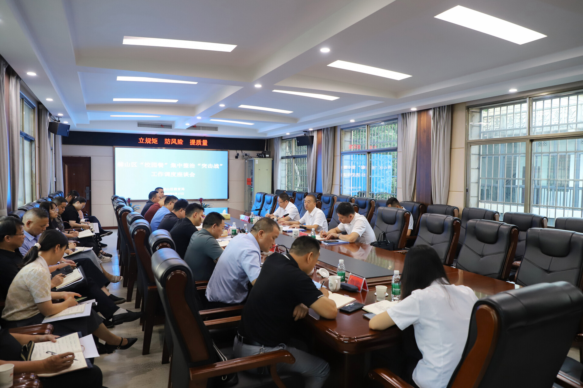随后在区教育局召开座谈会。会上,区教育局汇报了全区“校园餐”集中整治“突击战”工作情况;与会领导和相关单位作发言。