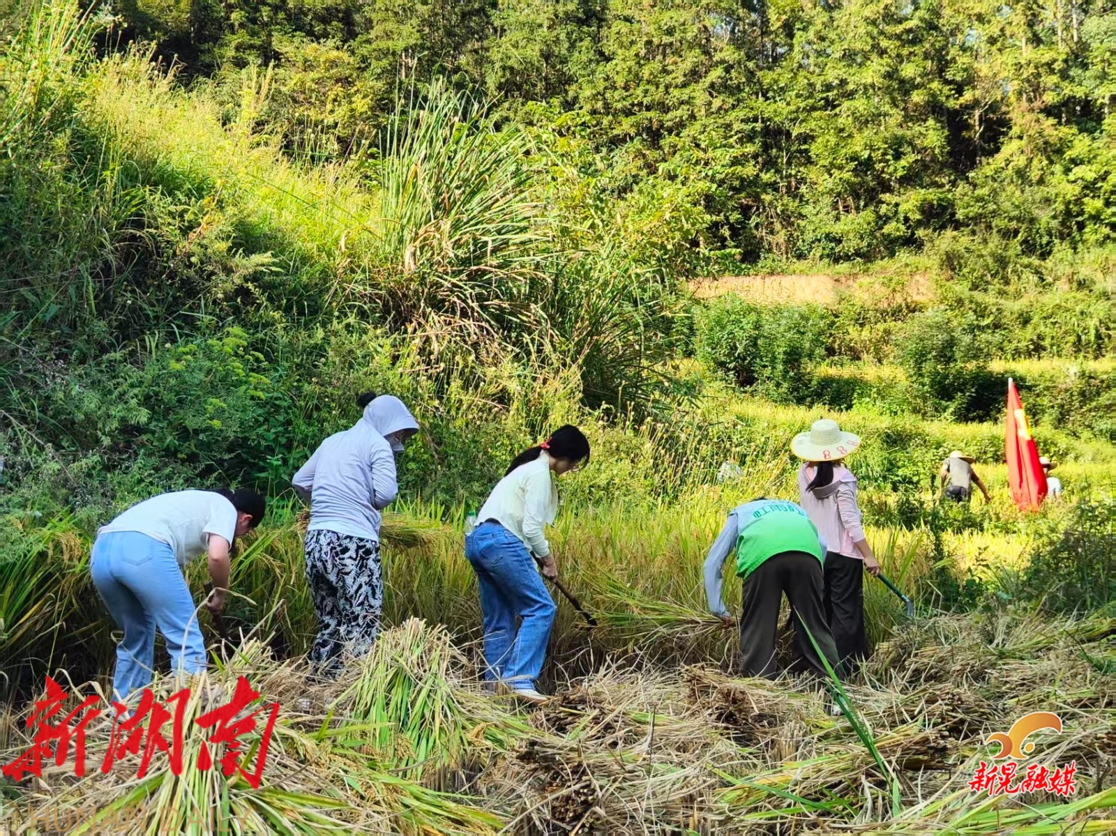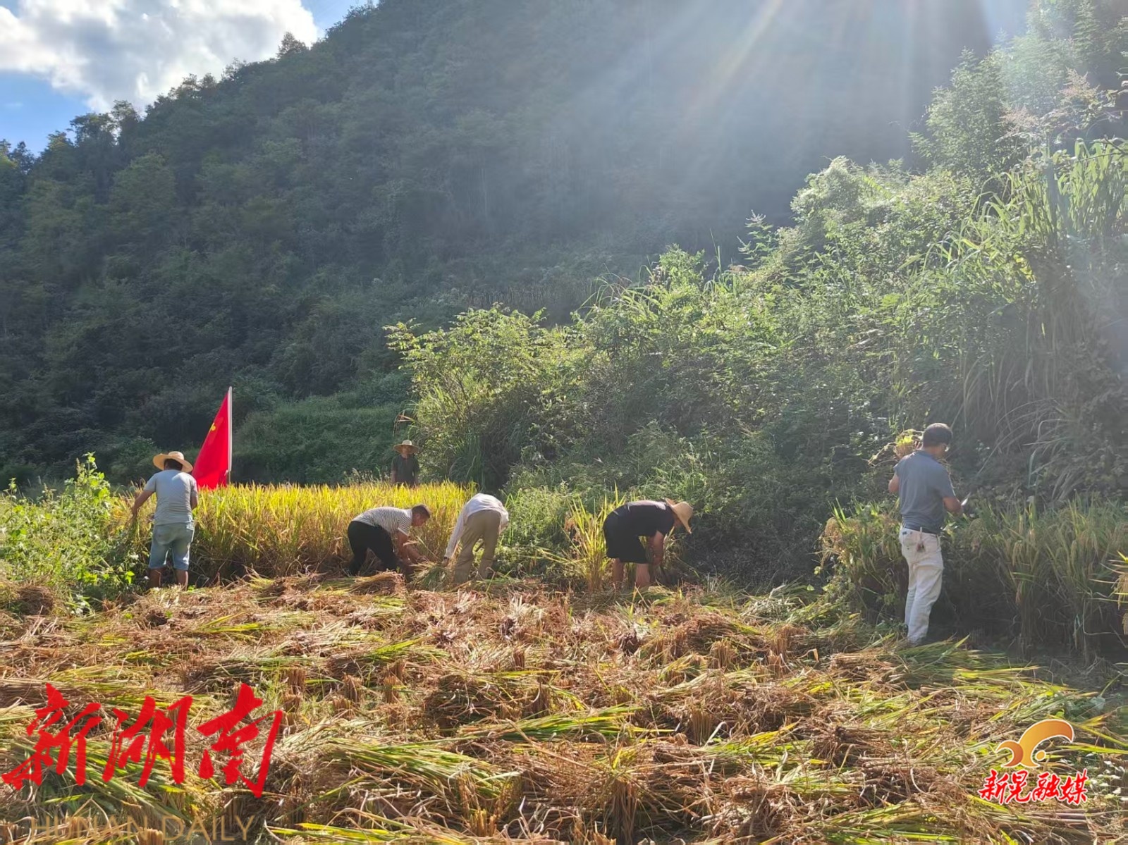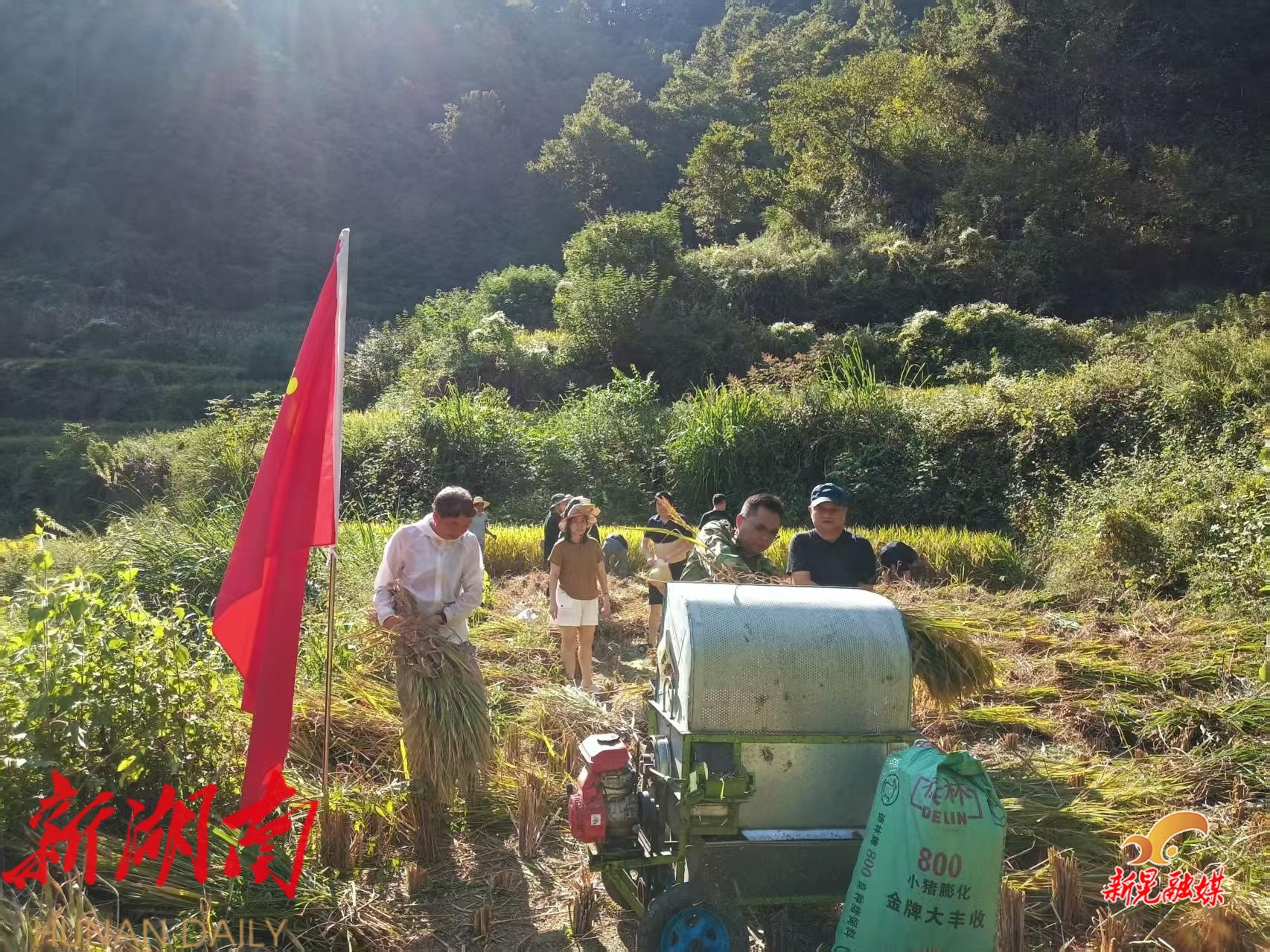 贡溪镇机关党员助农秋收 党旗飘扬暖民心