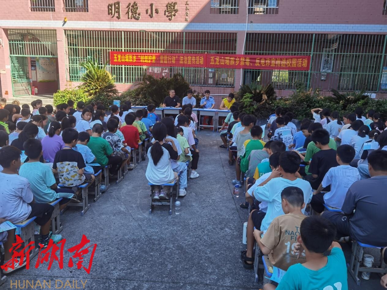 湖南日报·新湖南客户端9月18日讯(通讯员 张进权 唐四万) 9月17日,宁远县五龙山瑶族乡司法所联合禁毒专干、法治副校长、“政法五老”人员,为乡中心校师生带来开学“第一堂”普法课,提升青少年对身边潜在安全风险的认知,营造平安和谐的校园环境。