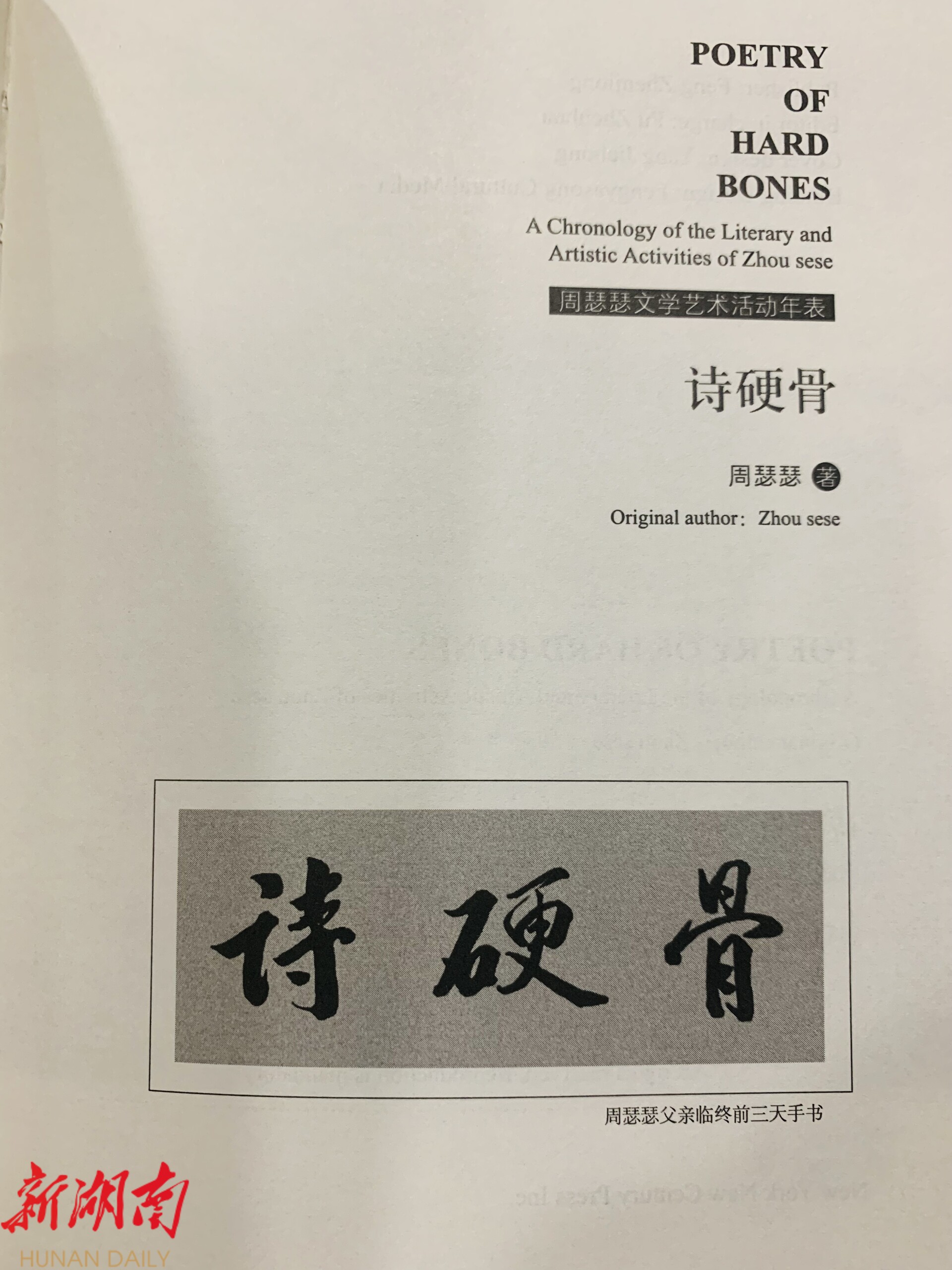 近日,《诗硬骨:周瑟瑟文学艺术活动年表》出版,这是一部诗人自传。周瑟瑟的父亲临终前三天留下遗训墨宝“诗硬骨”三个字,成为这部诗人年表的书名。在该书扉页上,十年前父亲的手迹依然温热。