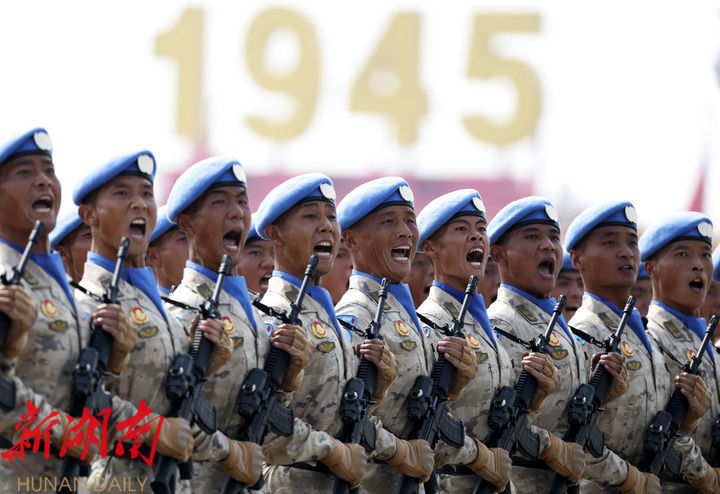 2025年9月3日,纪念中国人民抗日战争暨世界反法西斯战争胜利80周年大会在北京隆重举行。这是维和部队方队接受检阅。新华社记者 李明 摄