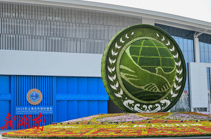 这是2025年8月30日拍摄的2025年上海合作组织峰会主会场外景。新华社记者 孙凡越 摄