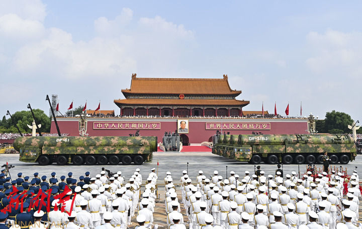 2025年9月3日,纪念中国人民抗日战争暨世界反法西斯战争胜利80周年大会在北京隆重举行。这是核导弹第一方队通过天安门广场。新华社记者 李鑫 摄