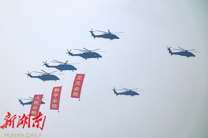 长安街上,雄师列阵、铁流滚滚,受阅官兵齐声高呼“正义必胜!和平必胜!人民必胜!”;直升机悬挂“正义必胜”“和平必胜”“人民必胜”条幅飞过天安门广场;8万羽和平鸽振翅翱翔……铭记历史、缅怀先烈的时刻,也是珍爱和平、开创未来的时刻。