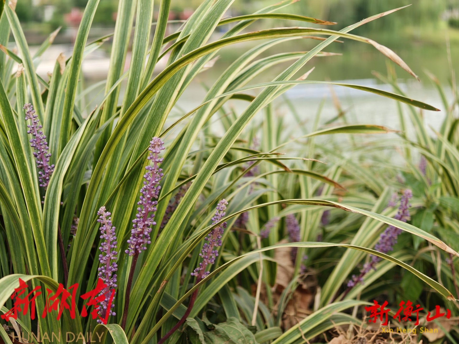 9月19日,记者走进毛泽建公园看到,步道绿地内栽植的大片金边阔叶麦冬开出一串串紫色的花,散发出阵阵淡淡花香。金边阔叶麦冬株型紧凑,狭长的线形叶片最外缘为亮丽的金黄色,蓝紫色的小花簇生于苞片内,野趣横生。其花期在5月至9月,眼下,正进入盛花期。