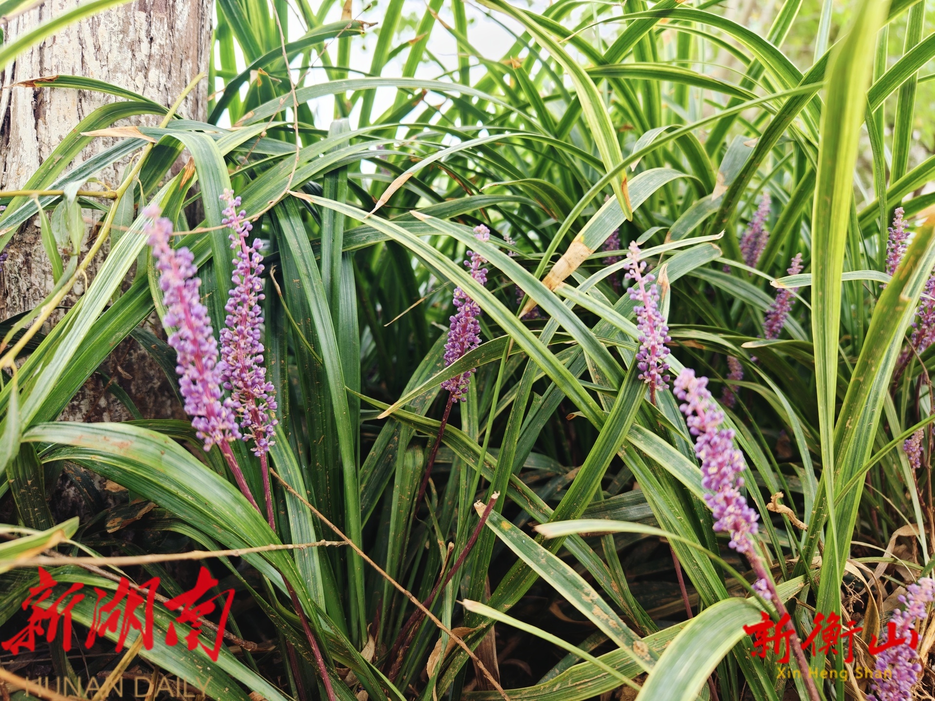 新衡山客户端9月19日(记者:何思霞 刘星语)秋风微凉,金边麦冬迎秋绽放。县毛泽建公园路边两侧的绿地内,大片金边阔叶麦冬犹如大地铺开的柔软绸缎,缀着金边、漾着紫韵,铺就了城市一角的“紫色浪漫”。