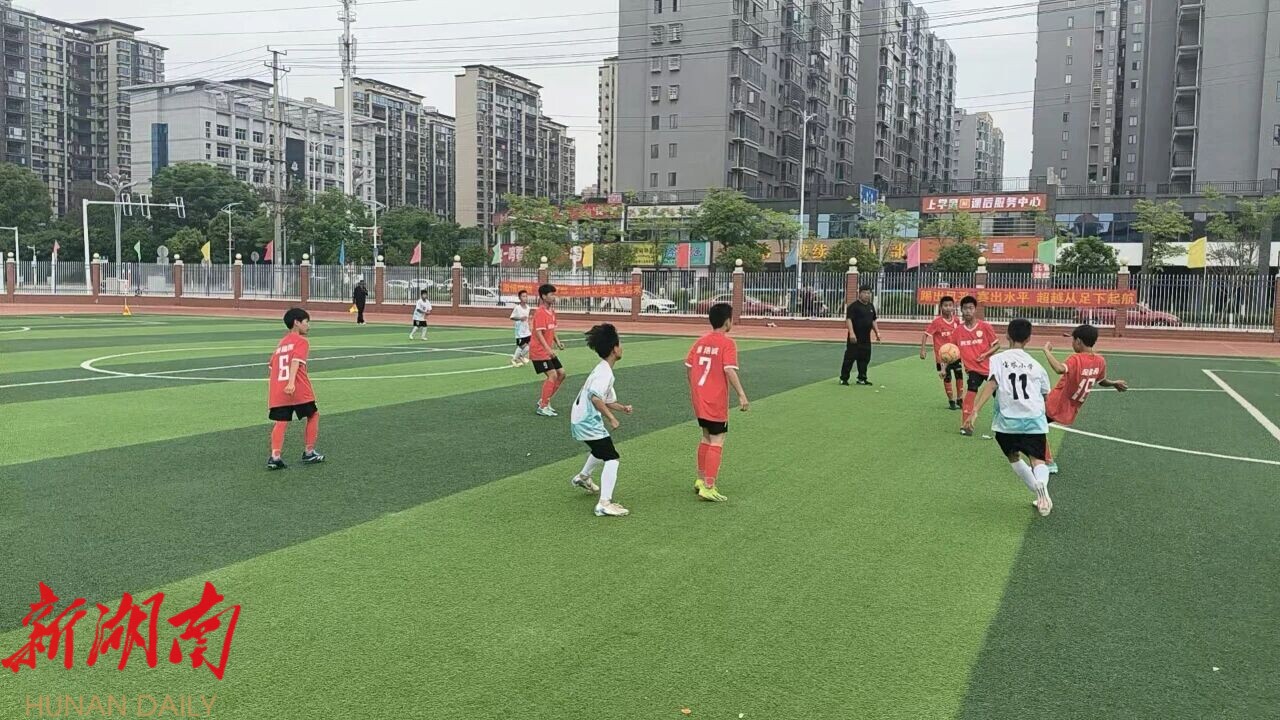 唐梓铨的脱颖而出,得益于祁阳市深厚的校园足球土壤。2025年4月,祁阳市成功举办第三届中小学生足球赛,设祁阳一中、文昌中学、民生小学、宝塔小学 、 明德小学 五 个 赛场 。绿茵场上,足球小将们斗志昂扬、活力四射,队员间配合默契、攻防有序,精彩的表现赢得现场观众阵阵喝彩。