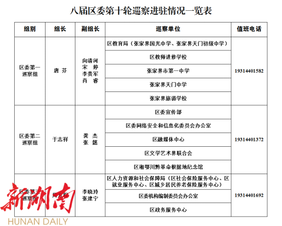 八届区委第十轮巡察完成进驻(附各巡察组联系方式)