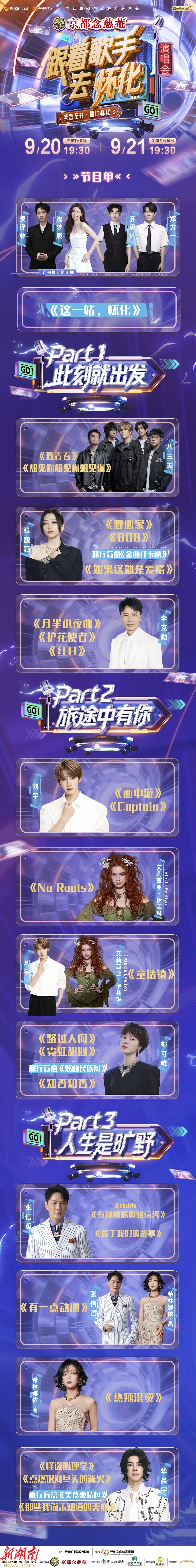 2025年9月20日19时30分,"跟着歌手去怀化"演唱会将在湖南省怀化市体育中心主体育场正式开唱,芒果TV将全程同步直播;9月21日19时30分湖南卫视播出。