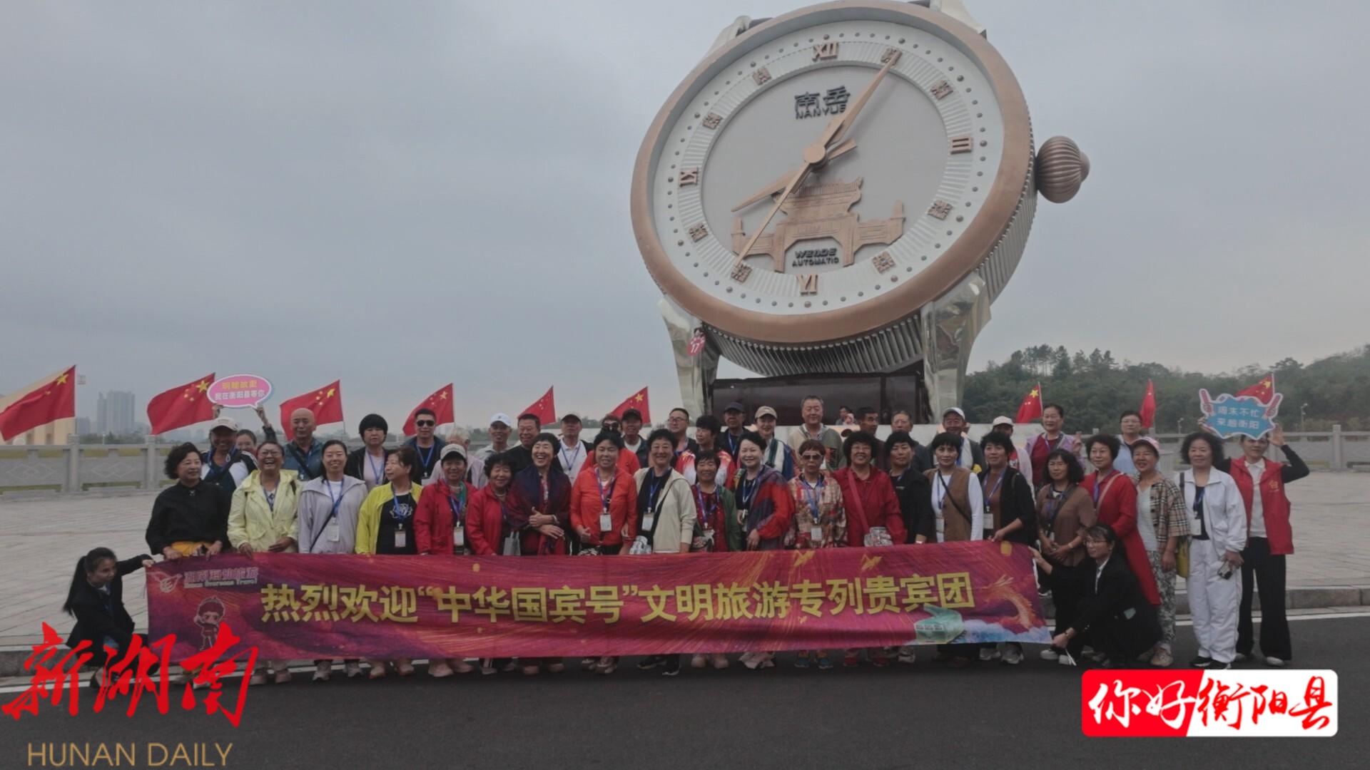 此趟旅游专列包括来自辽宁、吉林、黑龙江的21个旅游团,途经6个省2个行政区,在湖南选择了衡阳游览。林立的厂房、秀美的景色以及别具一格的景观景点,都让东北“老铁”们感到不虚此行。