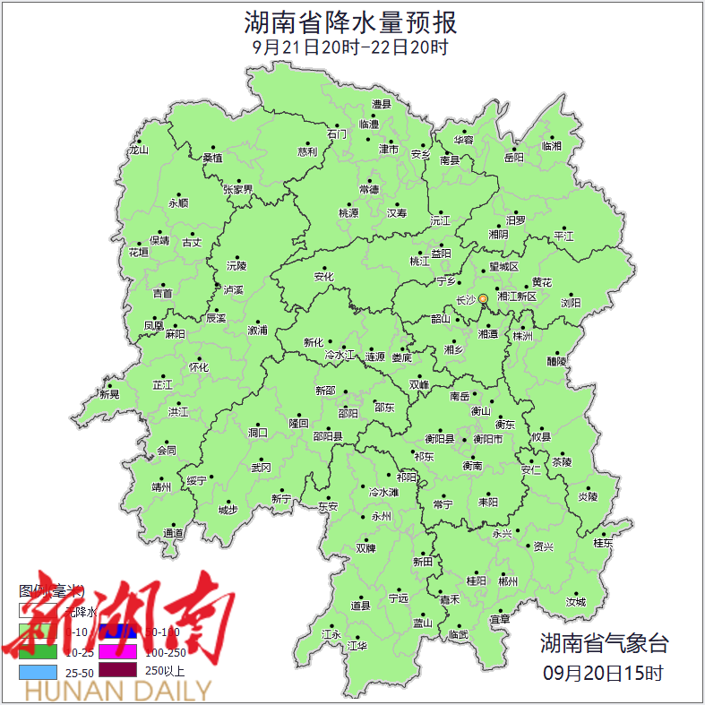 21日晚上至22日白天,全省阴天间多云有小雨;北风3~4级;最高气温湘东、湘南25~30℃,其他地区20~24℃,最低气温18~22℃。